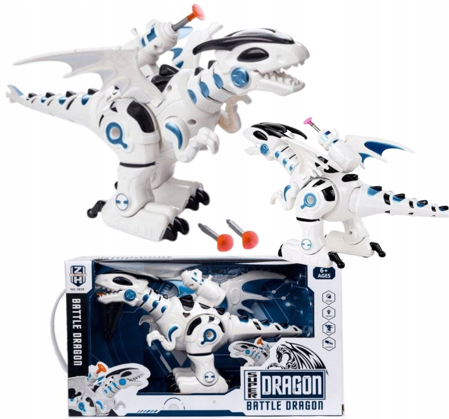 РОБОЗАВР СТРЕЛЯЕТ СТРЕЛАМИ, ДЫШИТ ОГНЕ — предложение как для маленьких, так и для чуть более крупных детей, которые любят динозавров. Интерактивный робот умеет ходить, стрелять, имеет светодиодную подсветку и издает характерные звуки! Все эти функции обеспечат много часов творческого удовольствия.