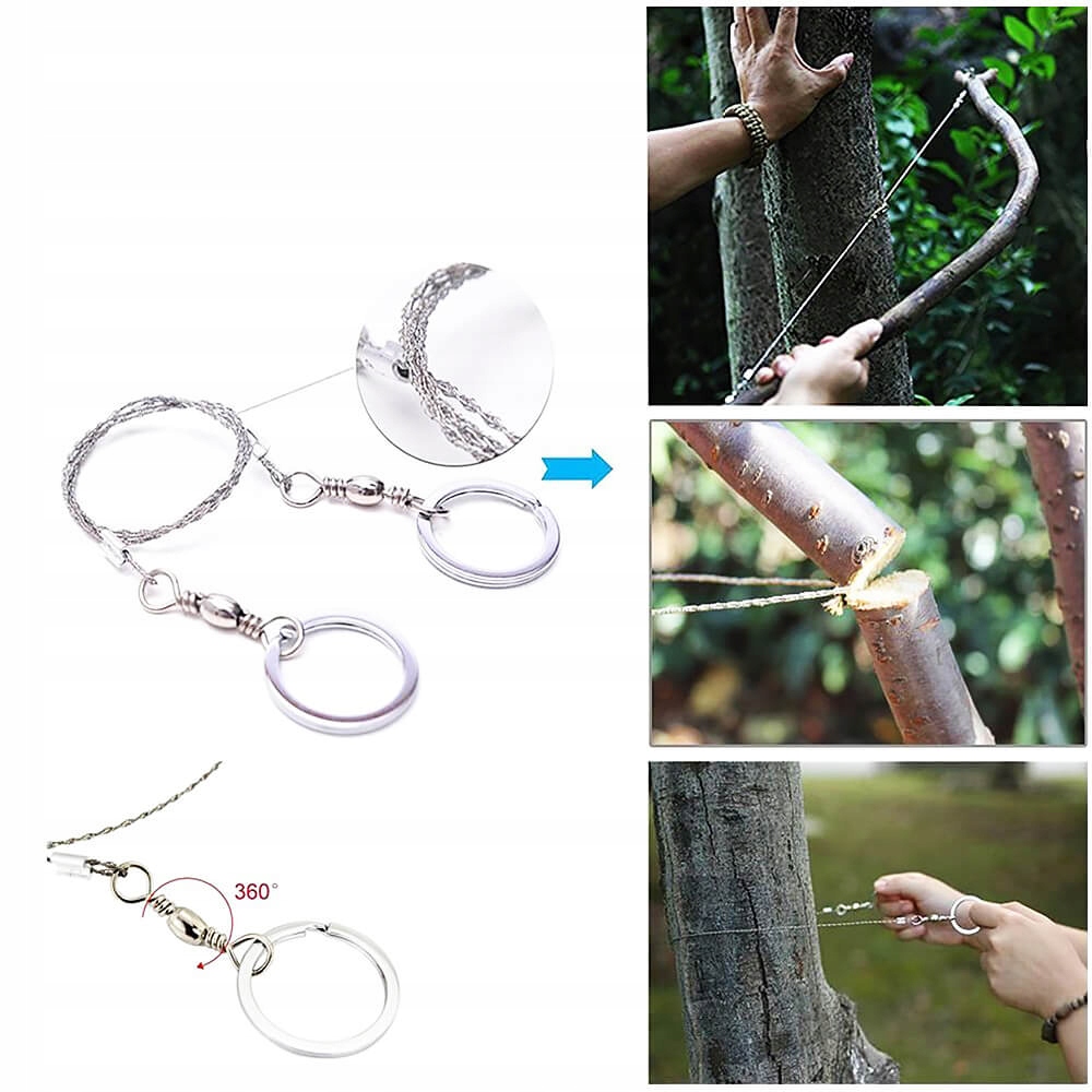 В комплект также входят рыболовная наживка, крючок и леска, которые позволят вам добывать еду во время длительного пребывания в лесу или на горе. Струнная пила и держатель для бутылок, прикрепленный к ремню, – другие полезные элементы, которые облегчат повседневную жизнь в путешествии. Складная жаровая трубка и кремневый поддон с мерным стаканчиком и открывашкой также входят в комплект и необходимы, когда нужно разжечь огонь или открыть бутылку.