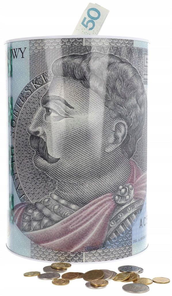 MEGA METALOWA PUSZKA SKARBONKA NOMINAŁY ZŁOTÓWKI GIGANT DUŻA XXL 500 zł