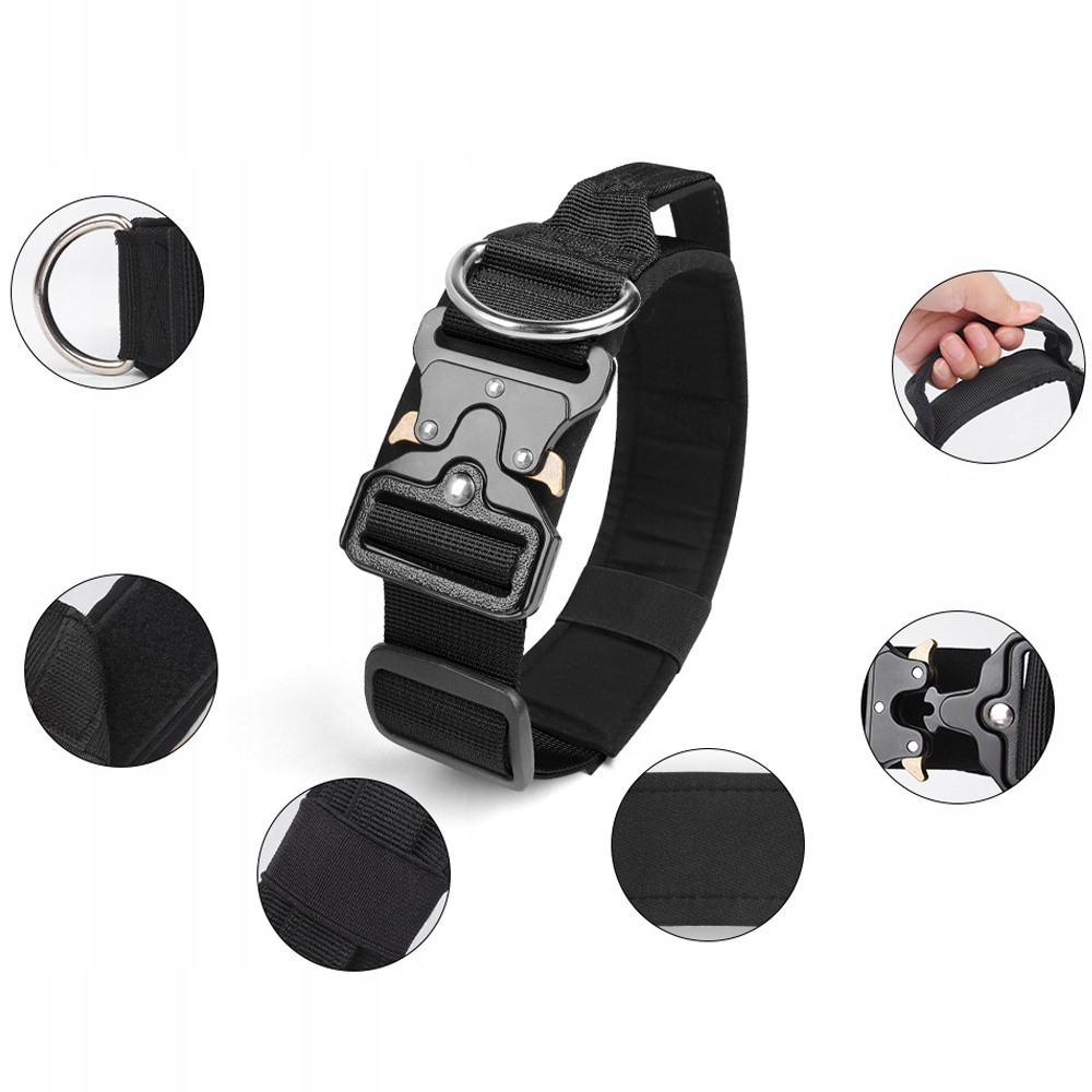 МЕГА МІЦНИЙ СУДОВИЙ ТАКТИЧНИЙ НАШИЙНИК ДЛЯ ВЕЛИКОЇ СОБАКИ, МЕТАЛЕВА ПРЯЖКА 45-65 XL