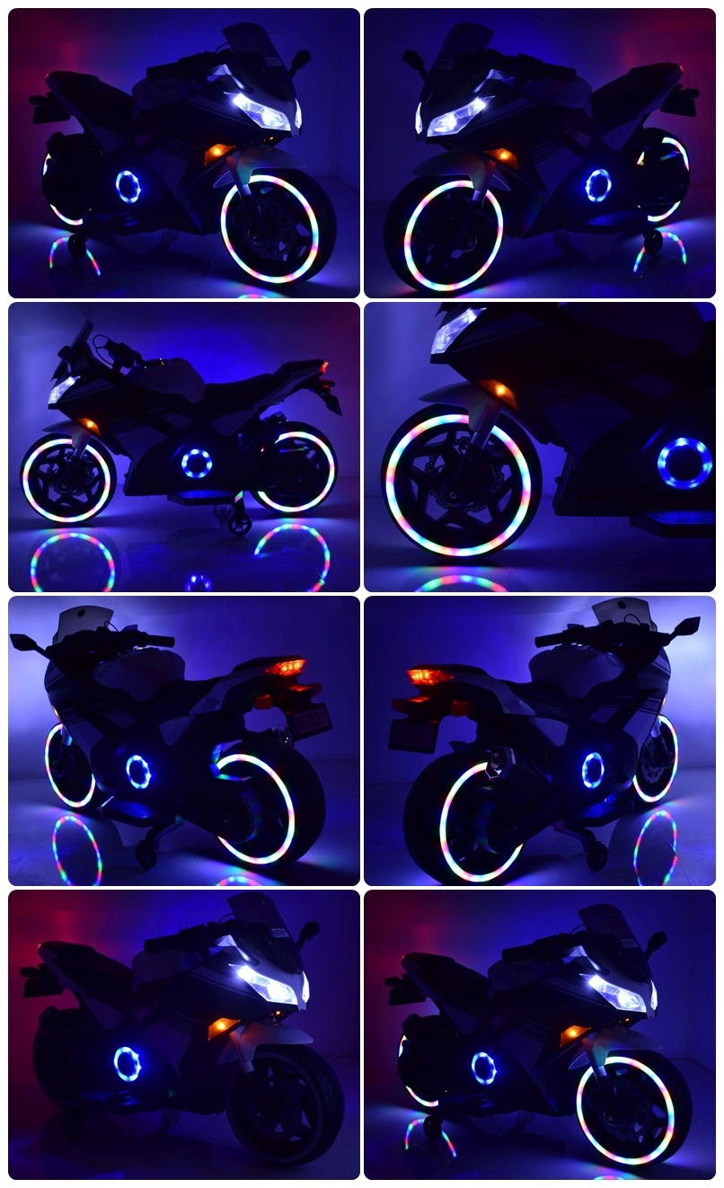 Панель со звуками (звуки мотоцикла) с USB и входом Aux и освещением транспортных средств (огни и светящимися колесами) сделает удовольствие более приятным.