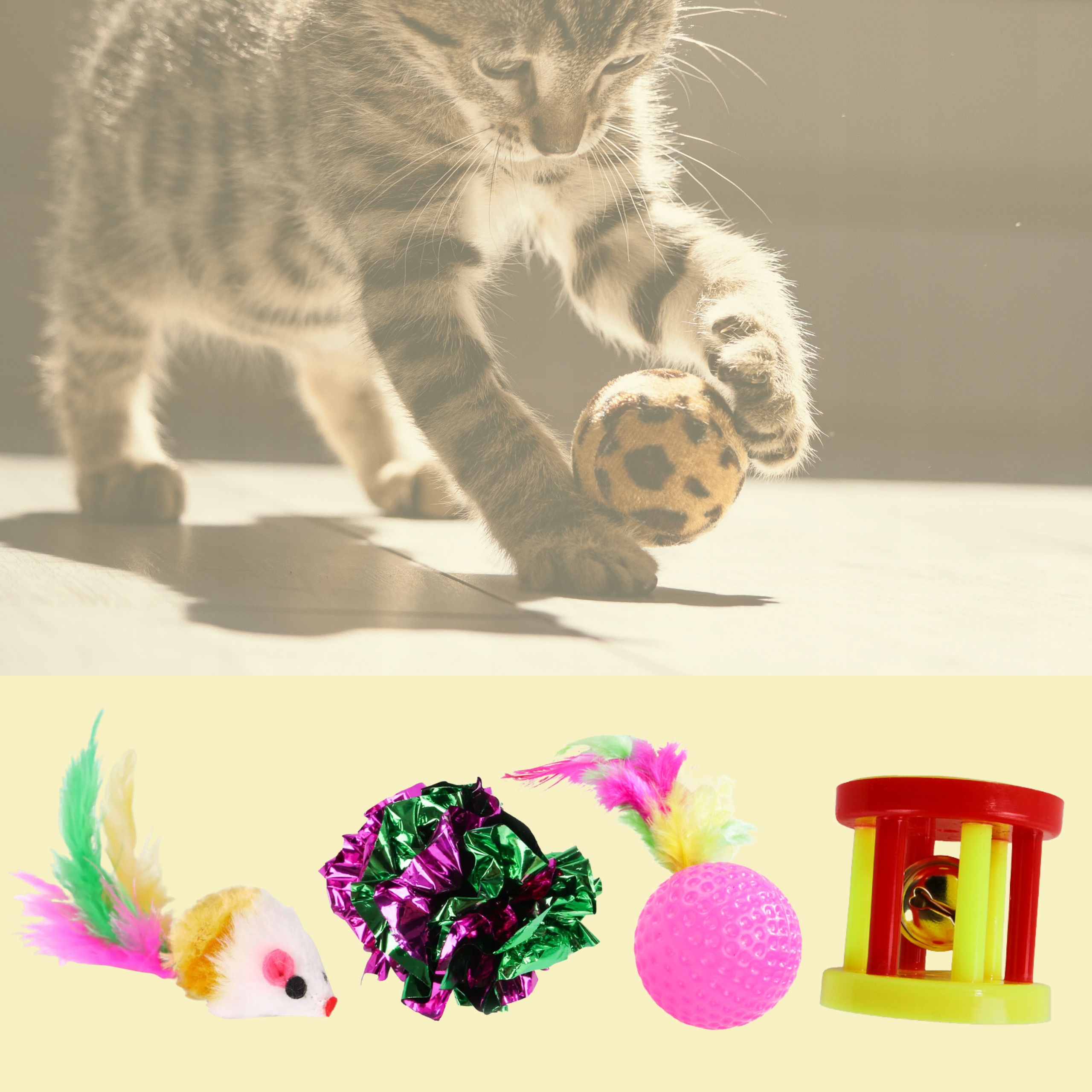 Твой кот Не можешь себе представить проведение свободного времени без озорства и активности? Подарите ему НАБОР ИГРУШЕК, чтобы игра дома стала увлекательным занятием!