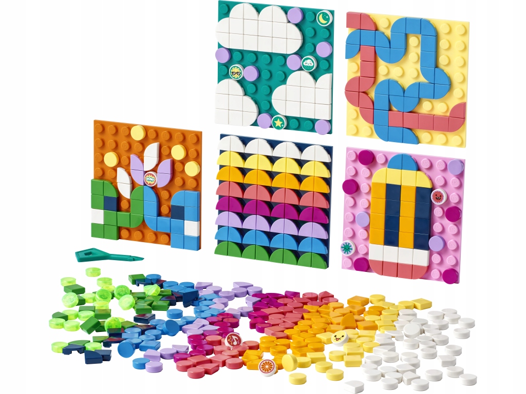 • Креативность повсюду – дети могут развивать свое воображение и дизайнерские навыки с помощью этого меганабора, в который входят пять разноцветных наклеек 8x8, более 450 плиток и буклет с идеями.