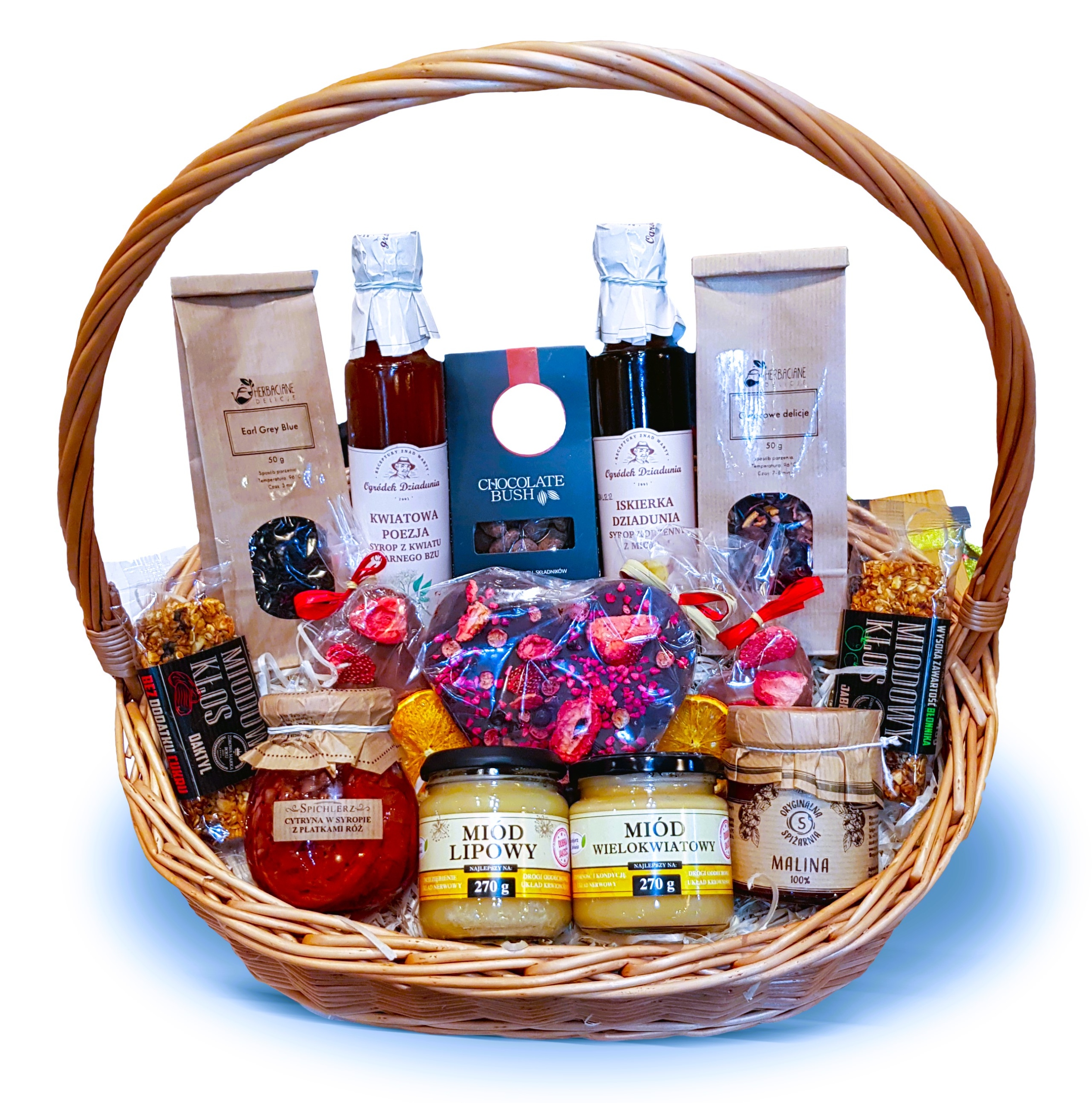 - Красиво упакованы в экологические плетеные корзины, наполненные ароматной древесной шерстью.