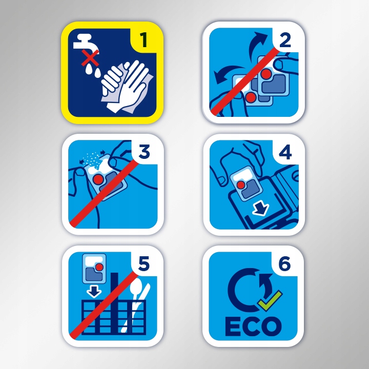 Кроме того, они действуют как ополаскиватель и соль. Улучшенная формула Powerball обеспечивает идеальный блеск и эффективную очистку. Удобен в использовании – не нужно дополнительно распаковывать и не нужно пачкать руки.