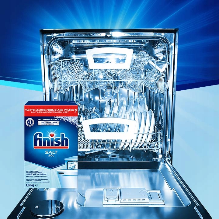 Агенты, содержащиеся в соли для посудомоечной машины Finish, смягчают воду и защищают посудомоечную машину от коррозии.