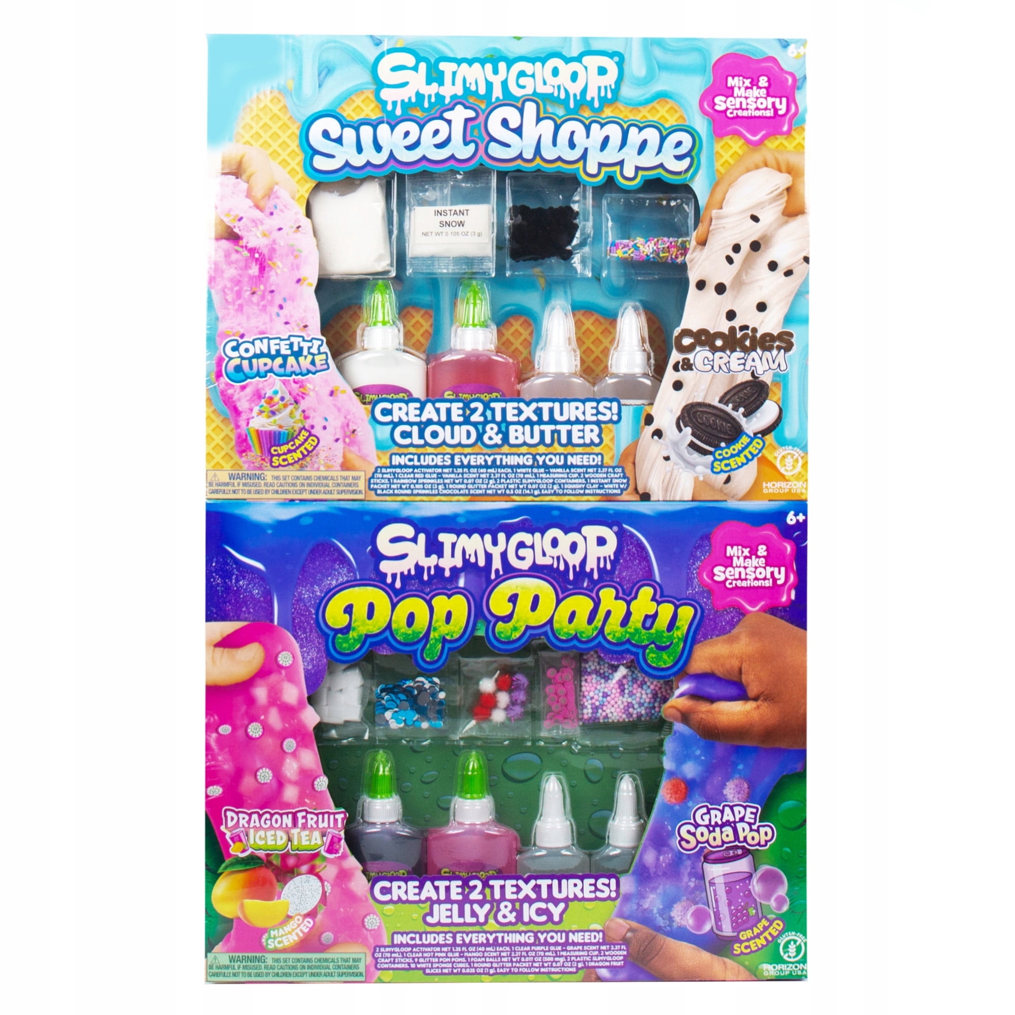 mega slime 2in1 set - slimygloop sweet shoppe + pop party | Отличный подарок в красочной упаковке! | Ароматное желе из слизи, ледяное, облачное и масло
