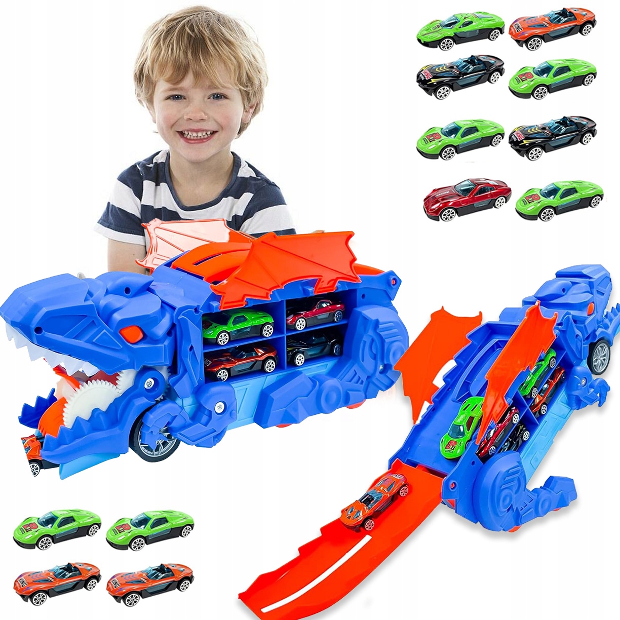 Мега Транспортер Динозавр T-Rex 2в1 + 12 Міні-автомобілі Гараж з пусковою установкою