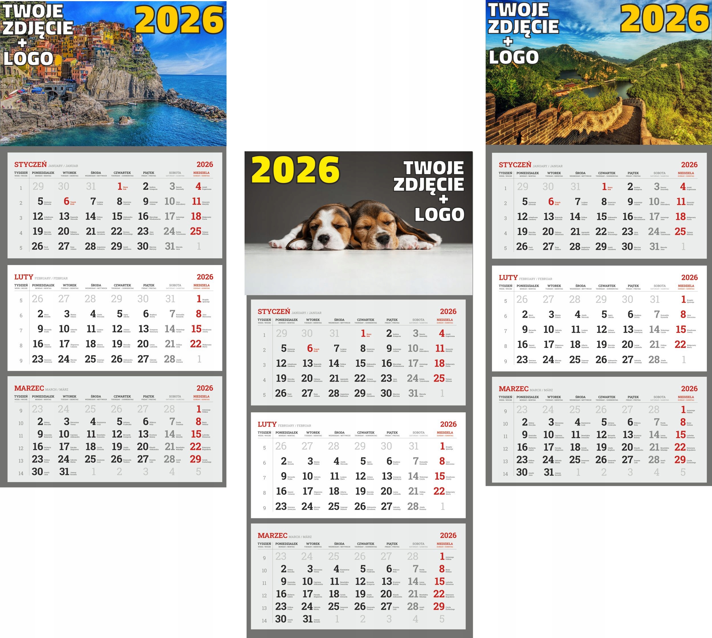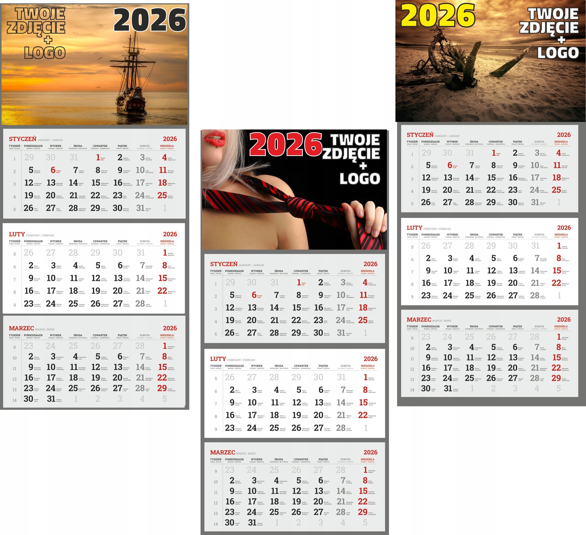 Среди других наших предложений вы можете купить службу проекта тройного календаря. Такой проект можно использовать при печати календари, приобретенных в этом предложении. мы обслуживаем наших клиентов всесторонне - от проекта до печати.