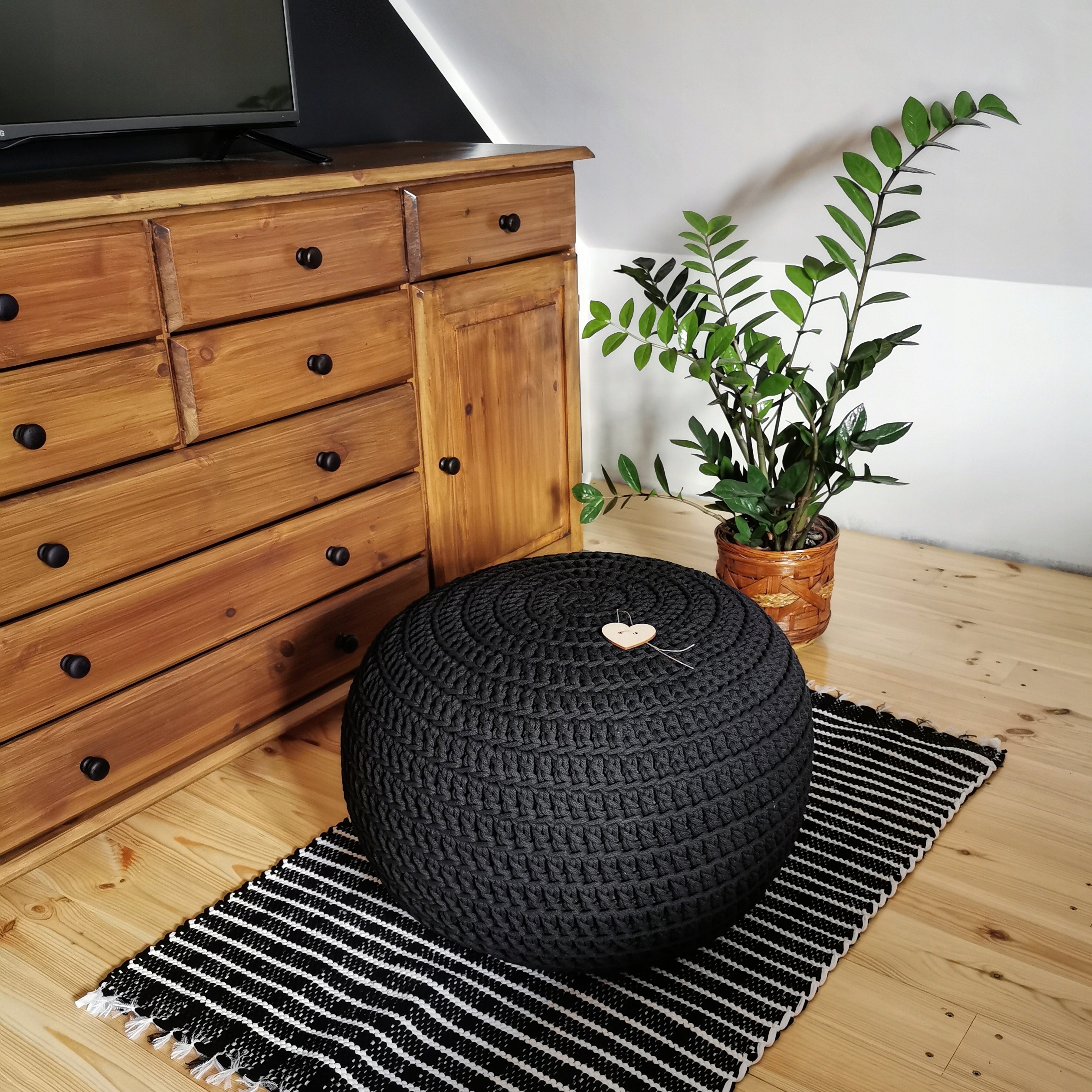 Пуф ручной работы из толстой хлопковой нити диаметром 5 мм.