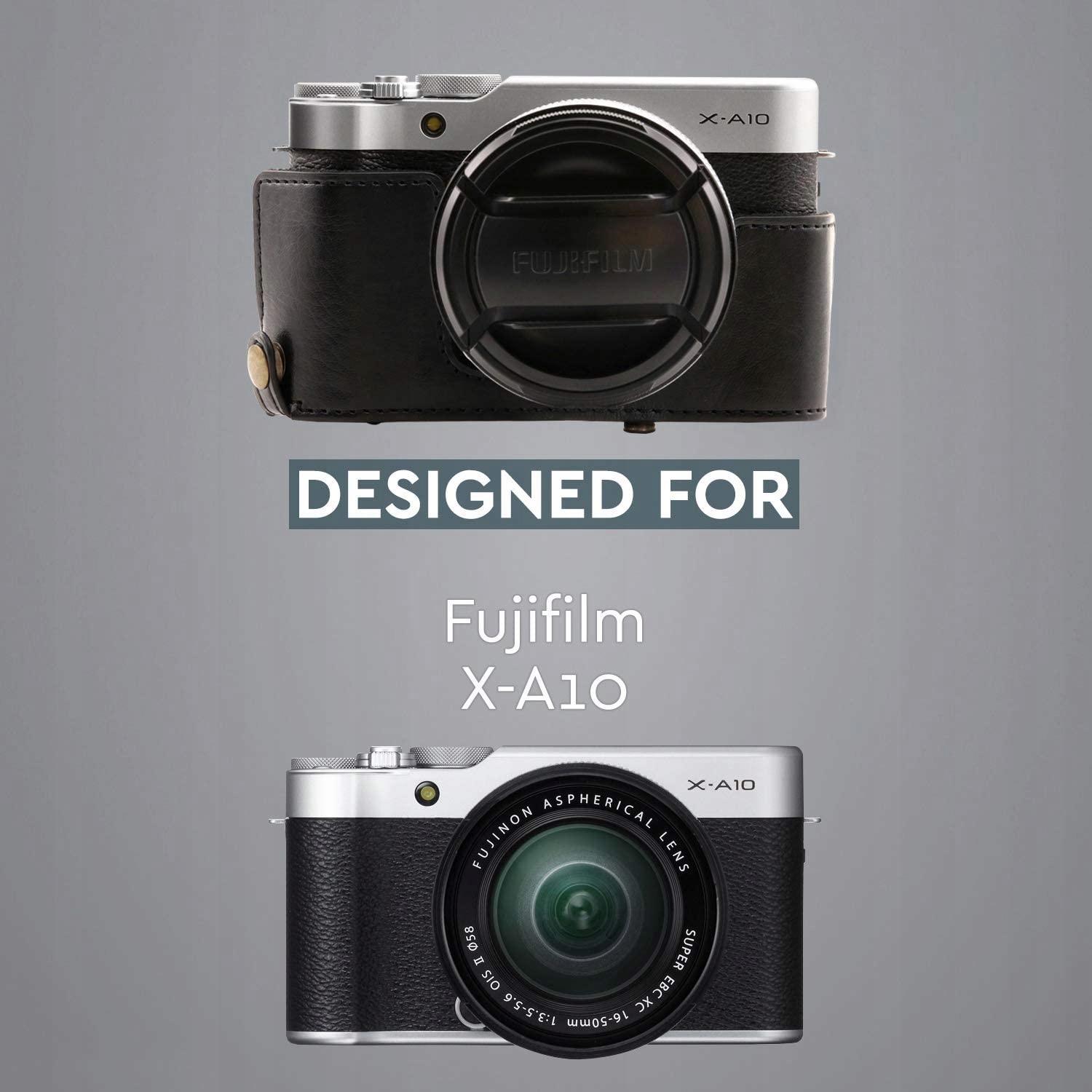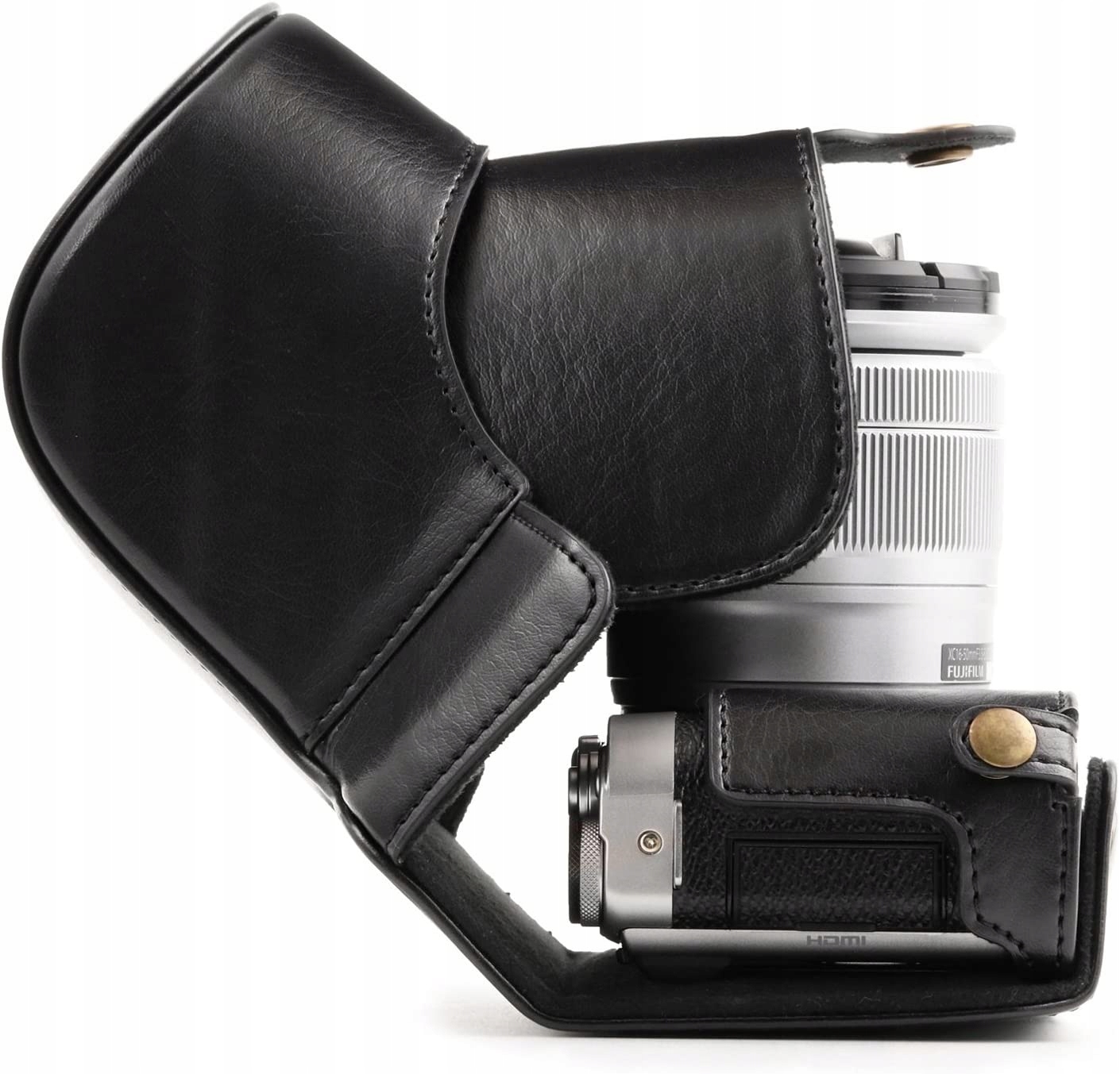 мегагический MG1001, когда -либо готовый кожаный чехол и ремень с аккумулятором в Fujifilm x -a10 - Черная камера