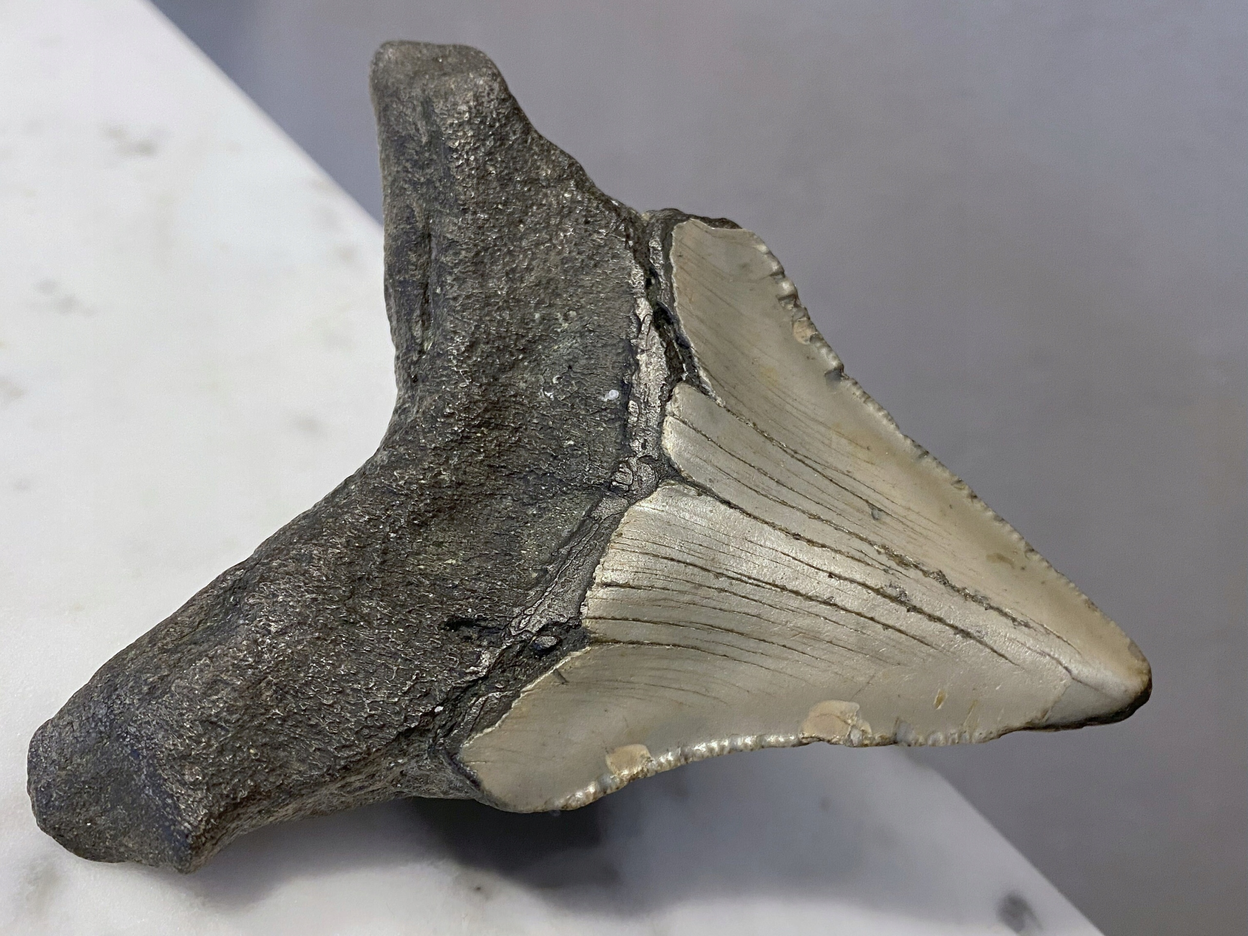 Мегалодон Белый Идеальный Зуб - Акула Музей Зуба Гигантской Ископаемой Акулы 97 мм