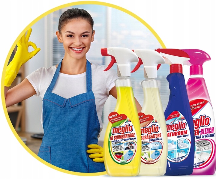 Удалите жирные пятна с помощью Meglio,верните блеск и окружите себя свежестью аромата лимона на каждом поверхность.