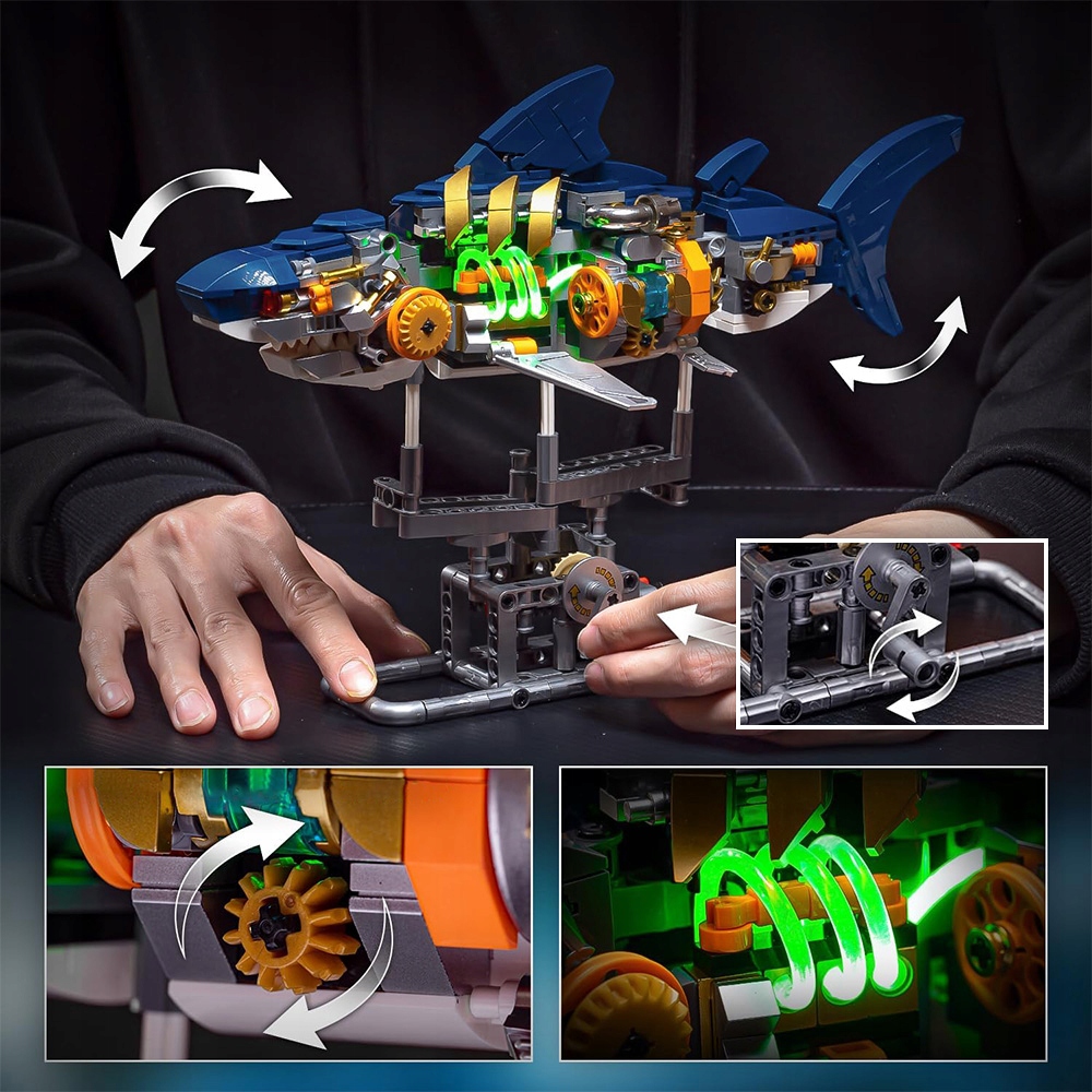 Погрузитесь в мир морских существ с этим уникальным строительным набором! Механическая акула - настоящий шедевр киберпанк, который будет восхищать как детей, так и взрослых.