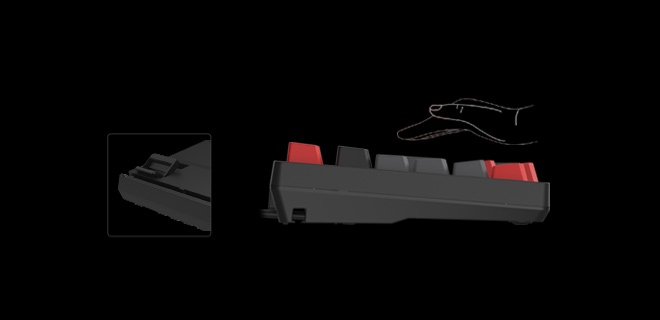 Клавиатура оснащена двухступенчатыми регулируемыми ножками, которые позволяют персонализировать стиль набора текста.