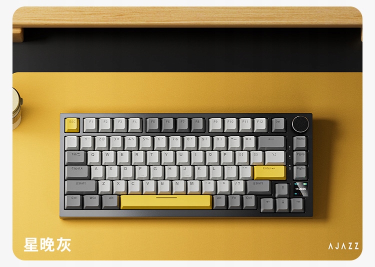 Сверхъяркий, износостойкий цветной TFT-экран, на котором отображается такая информация, как время, дата, режим питания, состояние клавиатуры и настраиваемая анимированная графика GIF.