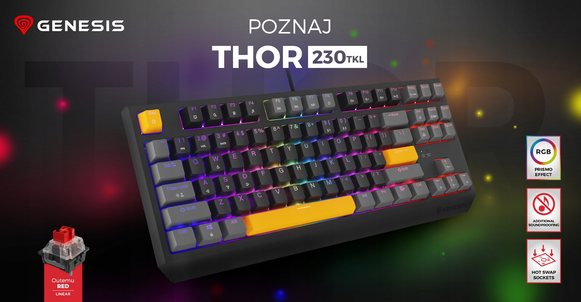 Механічна клавіатура GENESIS Thor 230 TKL з гарячою заміною RGB Outemu Red Grey+