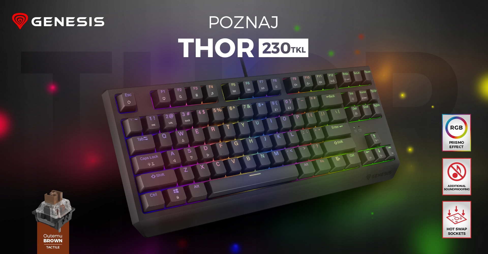 Механічна клавіатура GENESIS Thor 230 TKL з гарячою заміною RGB Outemu Brown Black
