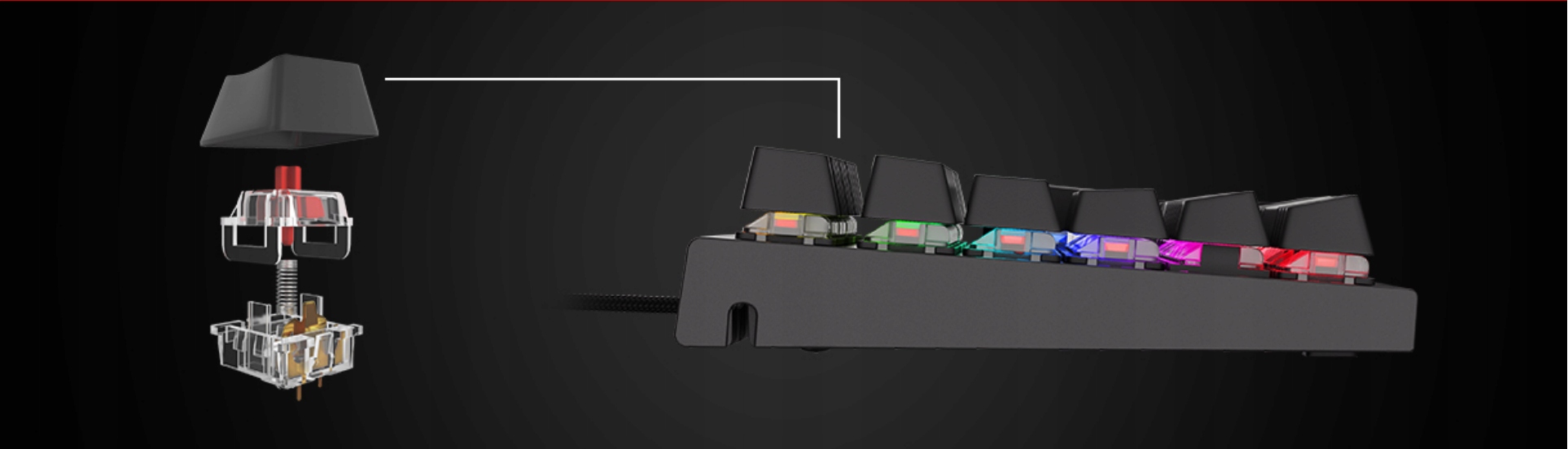 В основе Thor 300 TKL RGB лежат высококачественные переключатели Outemu Red, которые обеспечивают наилучшие впечатления от ресурсоемких игр. Для активации щелчка нам нужно всего лишь 45 граммов давления, а превосходное время отклика 8 мс обеспечивает лучшую производительность в игре. Клавиши отличаются необычайной долговечностью до 50 миллионов нажатий, поэтому прослужат вам долгие годы.