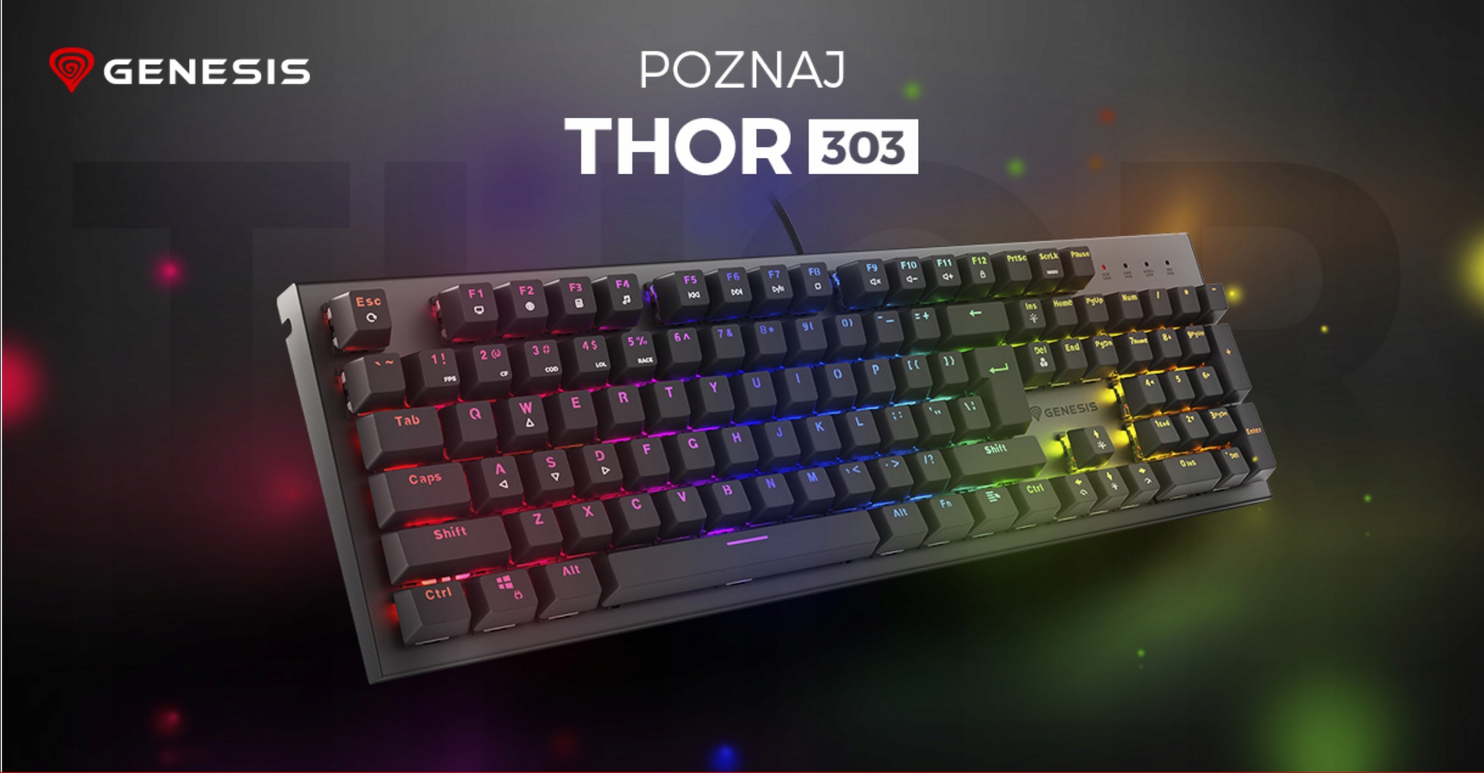 ИГРОВАЯ КЛАВИАТУРА GENESIS THOR 303 US RGB С ПОДСВЕТКОЙ, МЕХАНИЧЕСКИМ КРАСНЫМ ПЕРЕКЛЮЧАТЕЛЕМ, ЧЕРНЫМ, ГОРЯЧЕЙ ЗАМЕНОЙ
