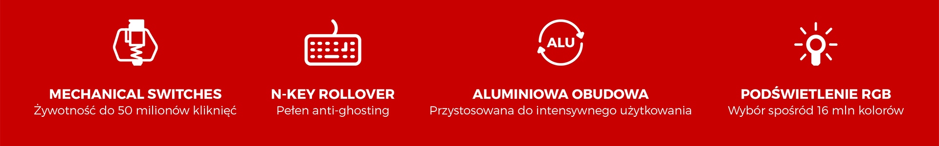 Прочный алюминиевый корпус в сочетании с полной RGB-подсветкой с эффектом PRISMO гарантирует долговечность и привлекательный внешний вид во время каждой игровой сессии.