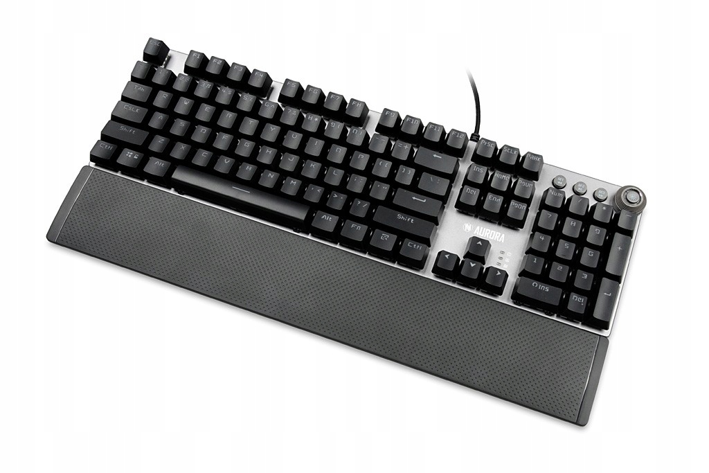 Уникальной особенностью Aurora K-3 является встроенный режим подсветки и ручка регулировки громкости. Клавиша Fn позволяет использовать функциональные кнопки для выполнения мультимедийных задач (управление плеером, запуск веб-браузера и т. д.). Программное обеспечение клавиатуры доступно на польском и английском языках. Он позволяет записывать макрокоманды, назначать свойства кнопкам и выбирать режим подсветки. Клавиатура имеет 2 режима защиты от ореолов: для 6 клавиш и полный. Это идеальный продукт для каждого игрока. Возможность заблокировать комбинацию Win+L не позволит вашему компьютеру случайно зависнуть в самый неудобный момент во время игры.