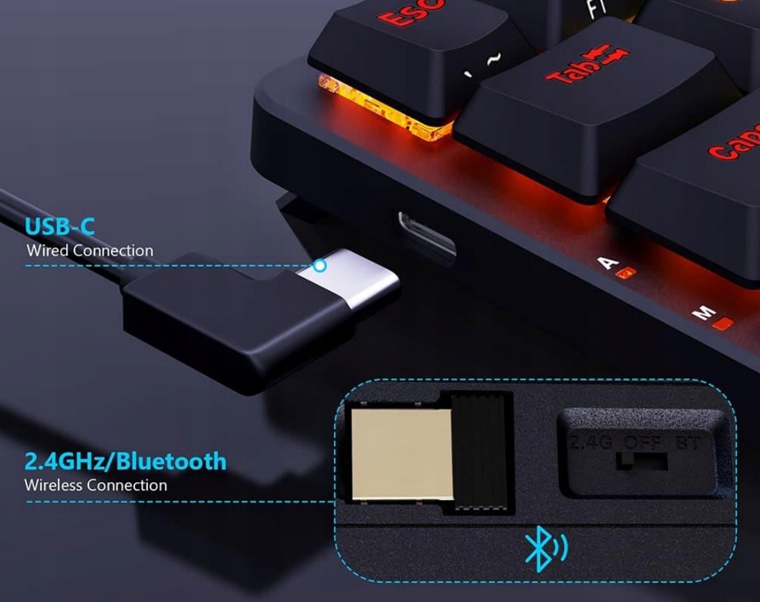 Механическая клавиатура имеет три режима подключения, включая режим проводного подключения USB-C, режим беспроводного подключения 2,4 ГГц и Bluetooth 3.0/5.0. Благодаря тройному режиму подключения она удобна как для геймеров, так и для геймеров. а также офисные работники.