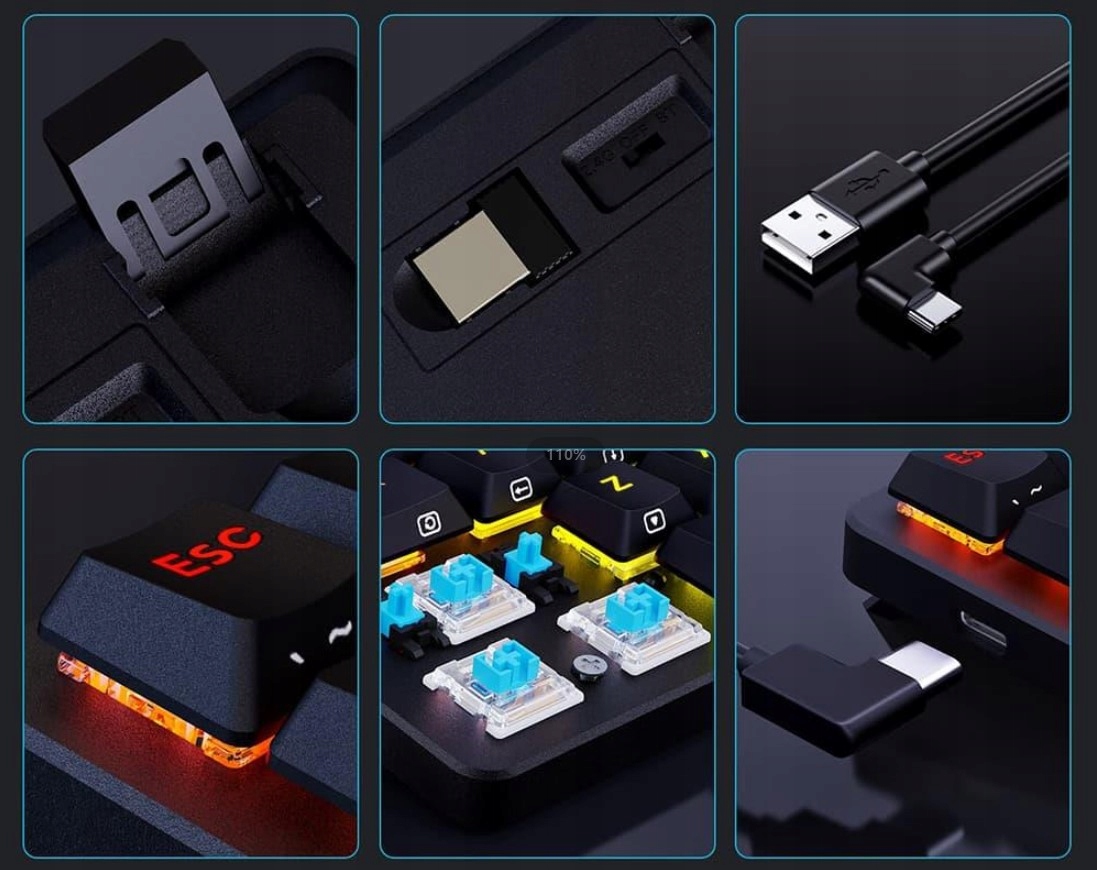 Съемные синие переключатели быстро реагируют и позволяют легко печатать и заменять переключатели без замены всей клавиатуры.