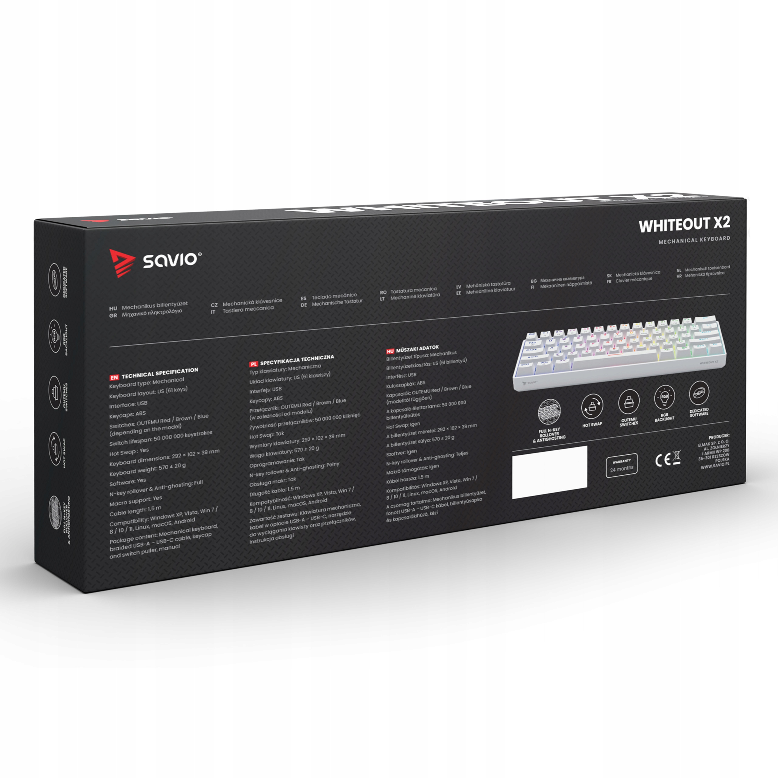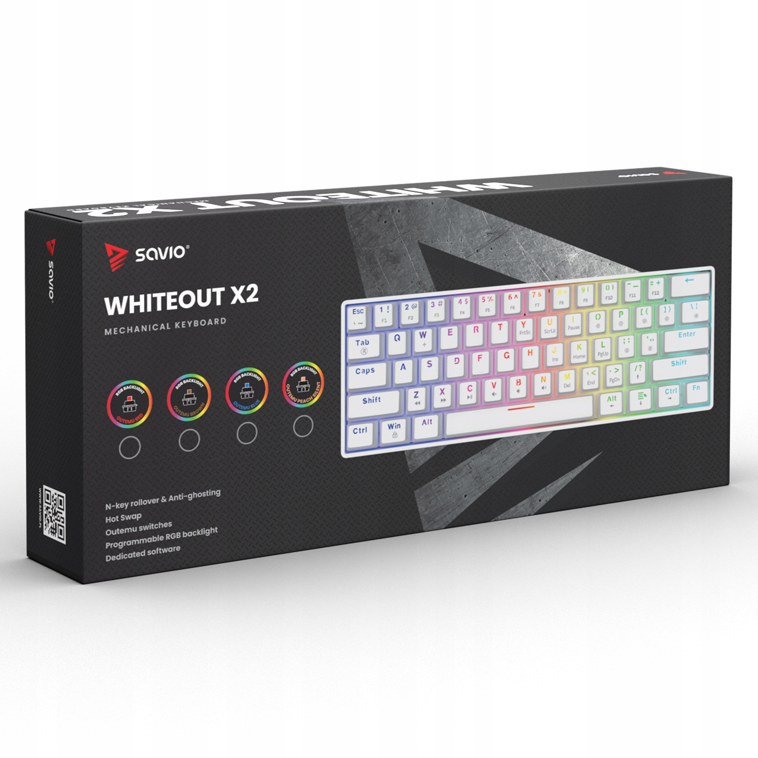 Механическая USB-клавиатура SAVIO WHITEOUT X2 Outemu Peach Silent с возможностью горячей замены