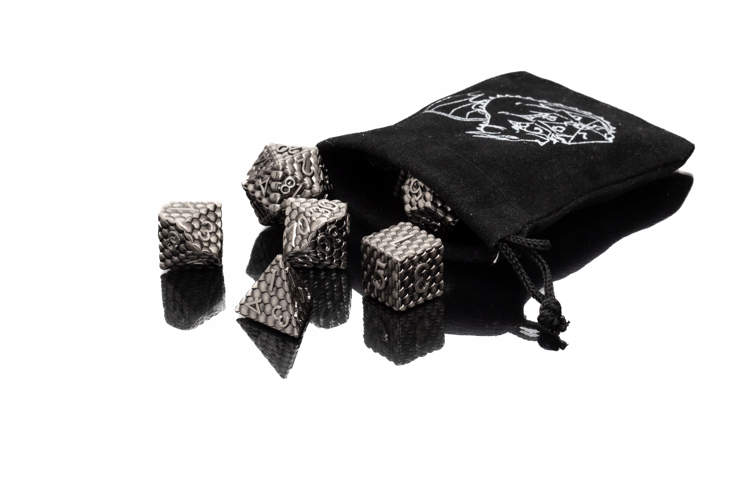 набор из семи металлических костей для ролевых игр