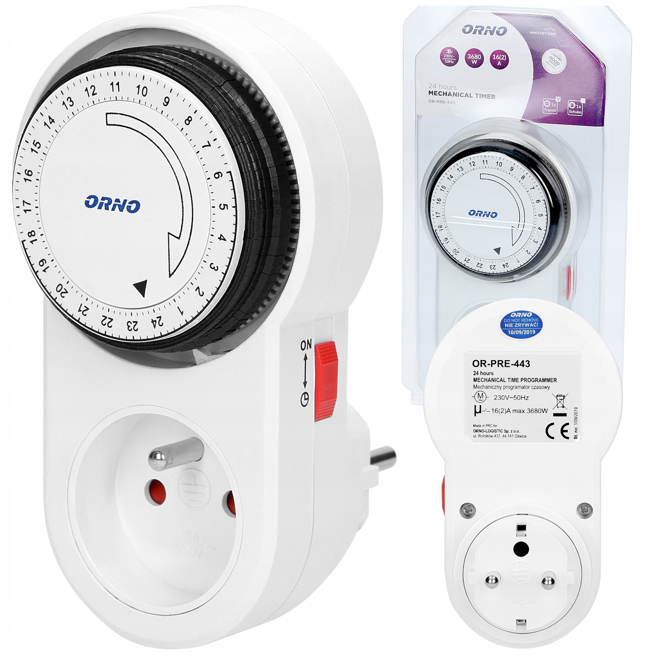 24-ЧАСОВОЙ ТАЙМЕР, ВЫКЛЮЧАТЕЛЬ, МЕХАНИЧЕСКАЯ РОЗЕТКА ORNO