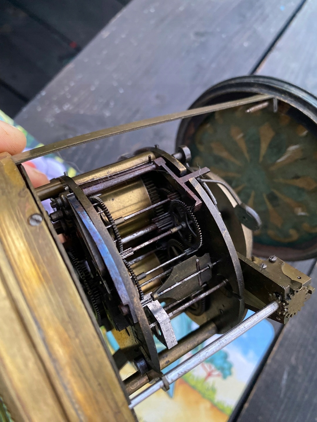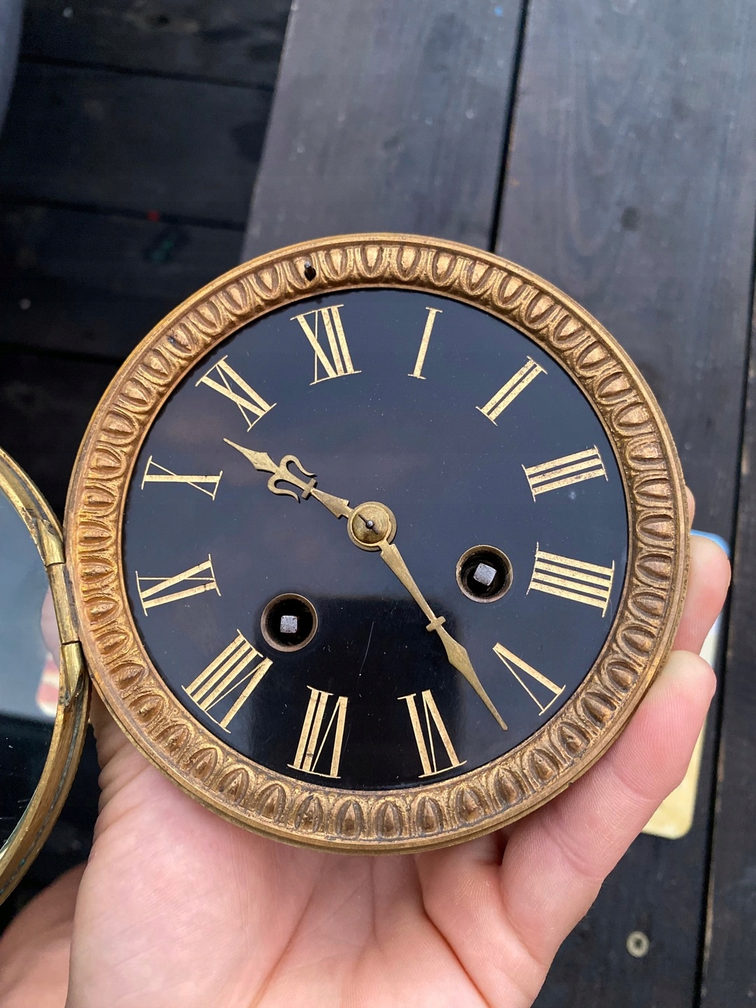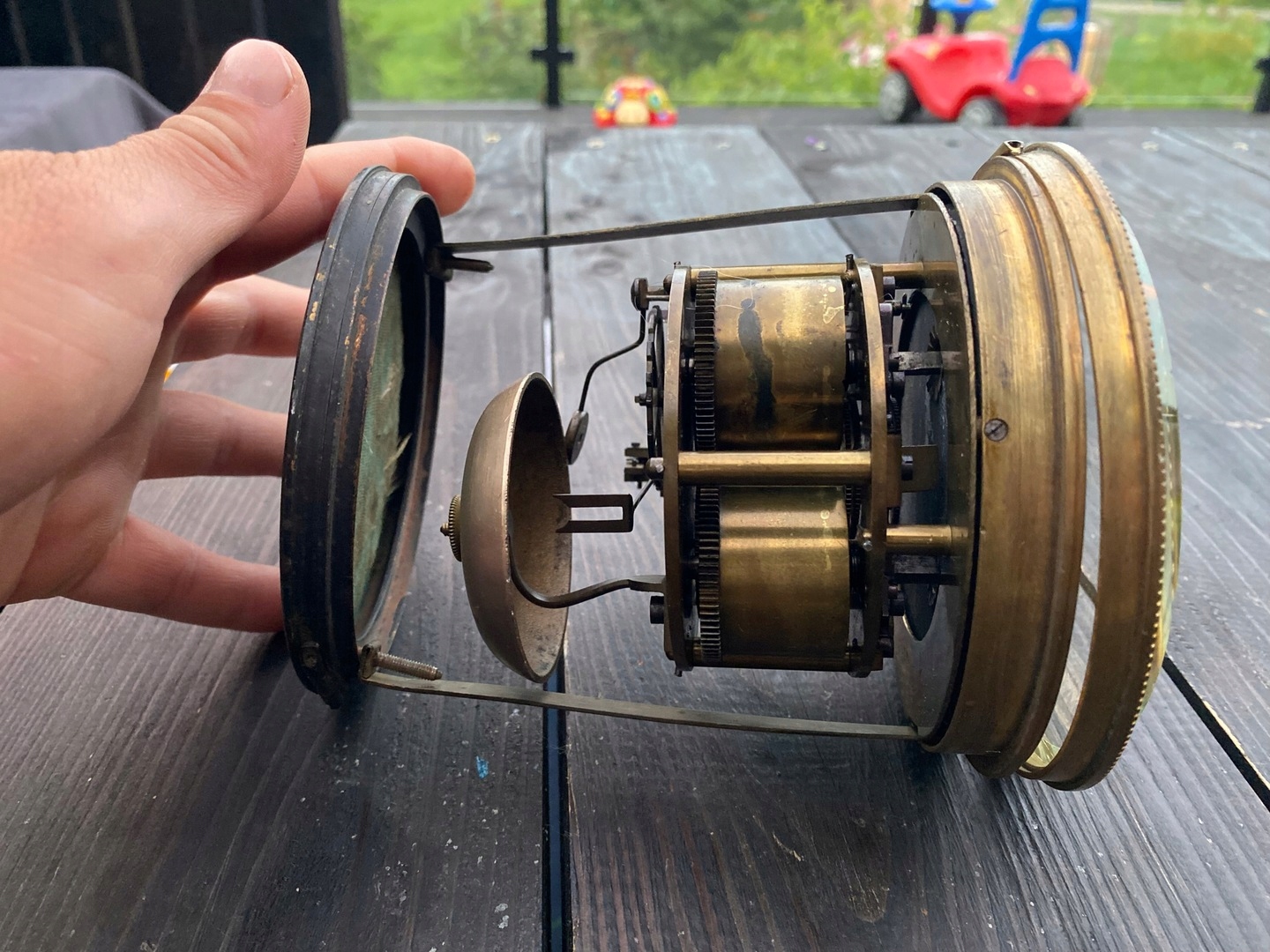 Пружинный механизм - рабочий, в хорошем состоянии, отбивает часы и полчаса. Пружины для завода и боя в порядке.