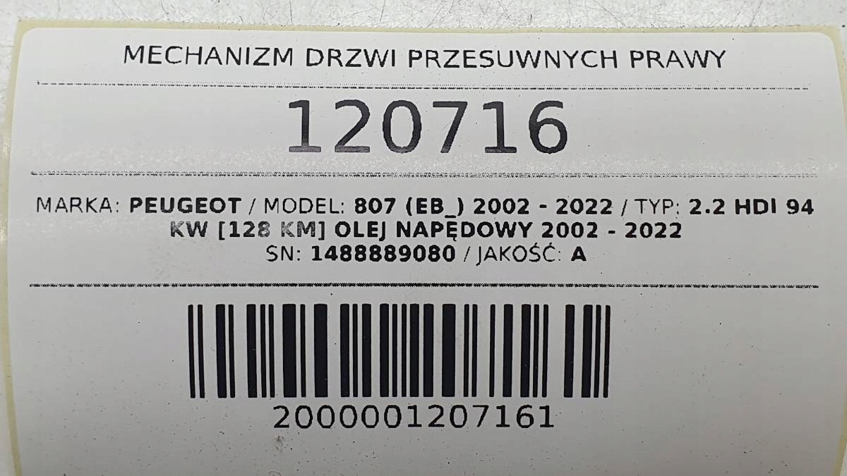 Элемент аукциона: Проятный двигатель механизм двигателя Правый Peugeot 807 1488889080