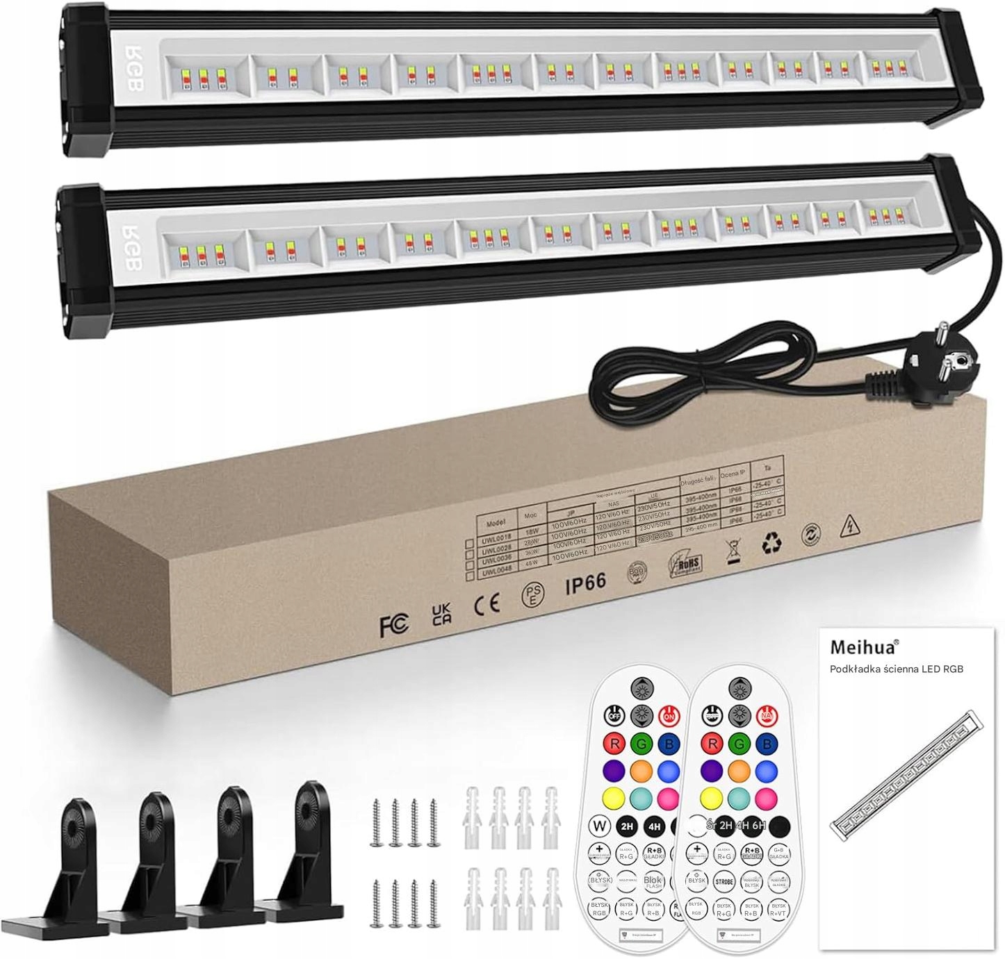 meihua 42w rgb flood 2 кусочки IP66 Водонепроницаемое внешнее настенное освещение Эффекты светодиодного освещения с пультом дистанционного управления 10 цветов 12 мод 6 уровней моста.