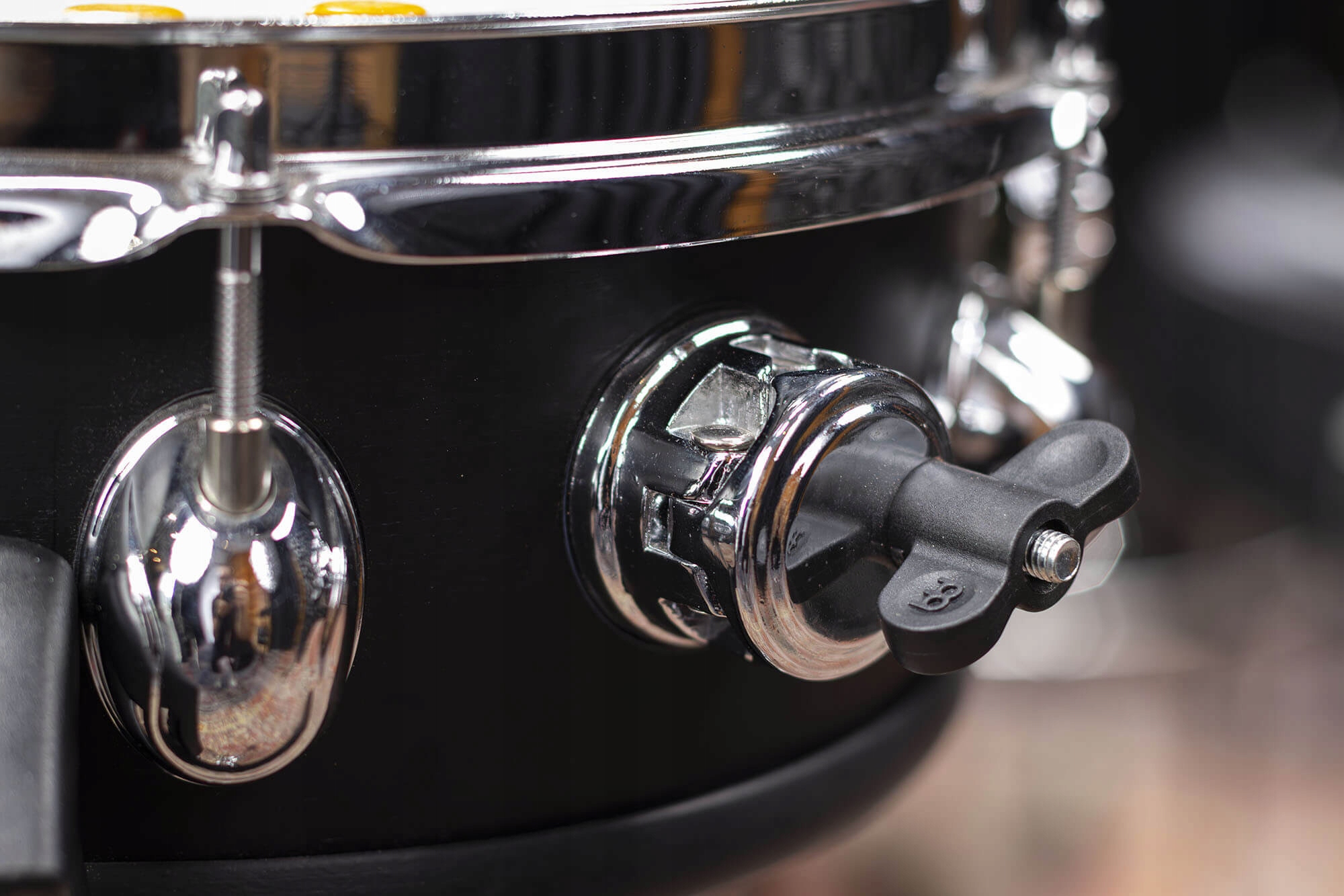Имеет держатель, который подходит для барабанных планок или небольших томов, что упрощает их установку и регулировку.