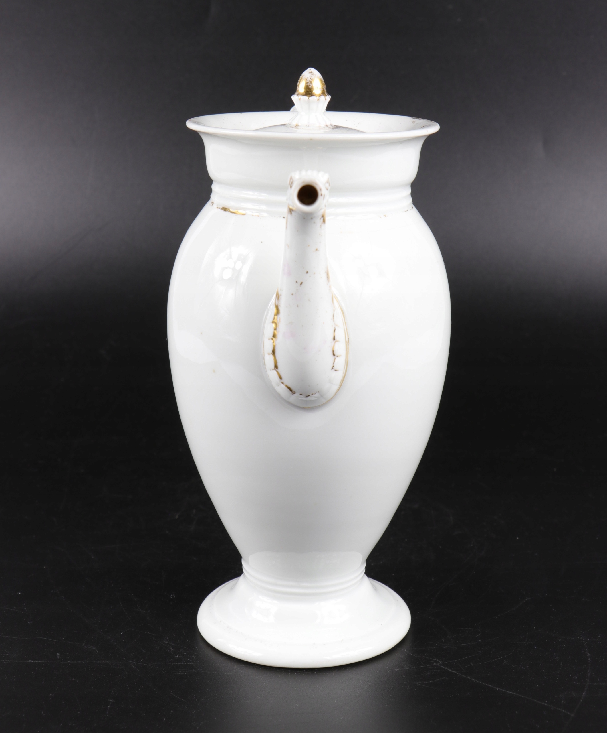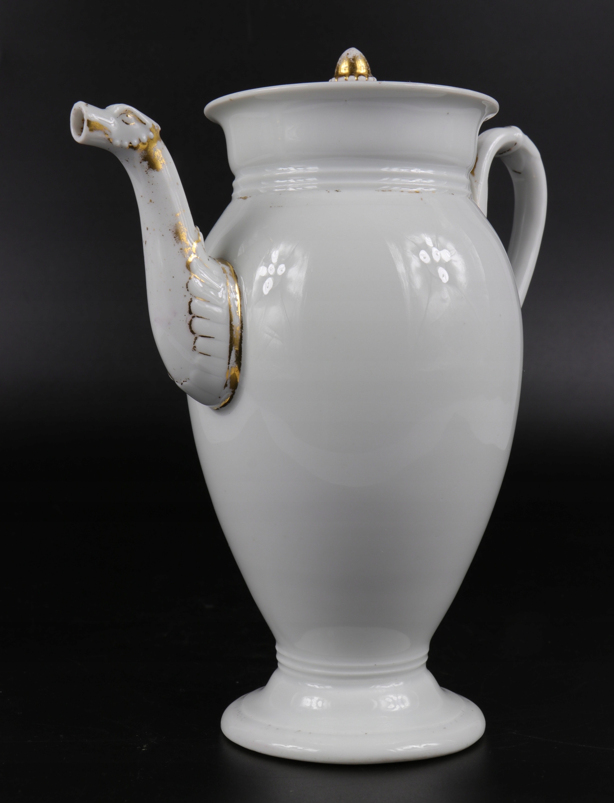 Чайник интересной неоклассической формы в стиле ампир, Мейсен первой половины XIX века. Фарфор, подписанный кобальтовым знаком в виде двух скрещенных саблей.
