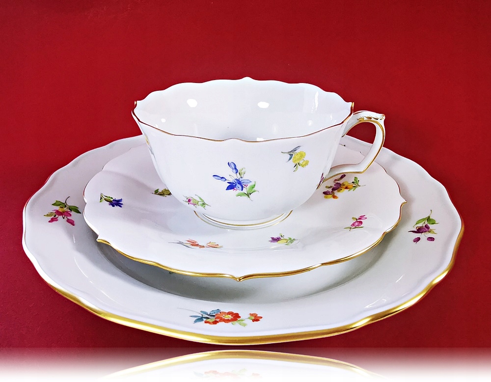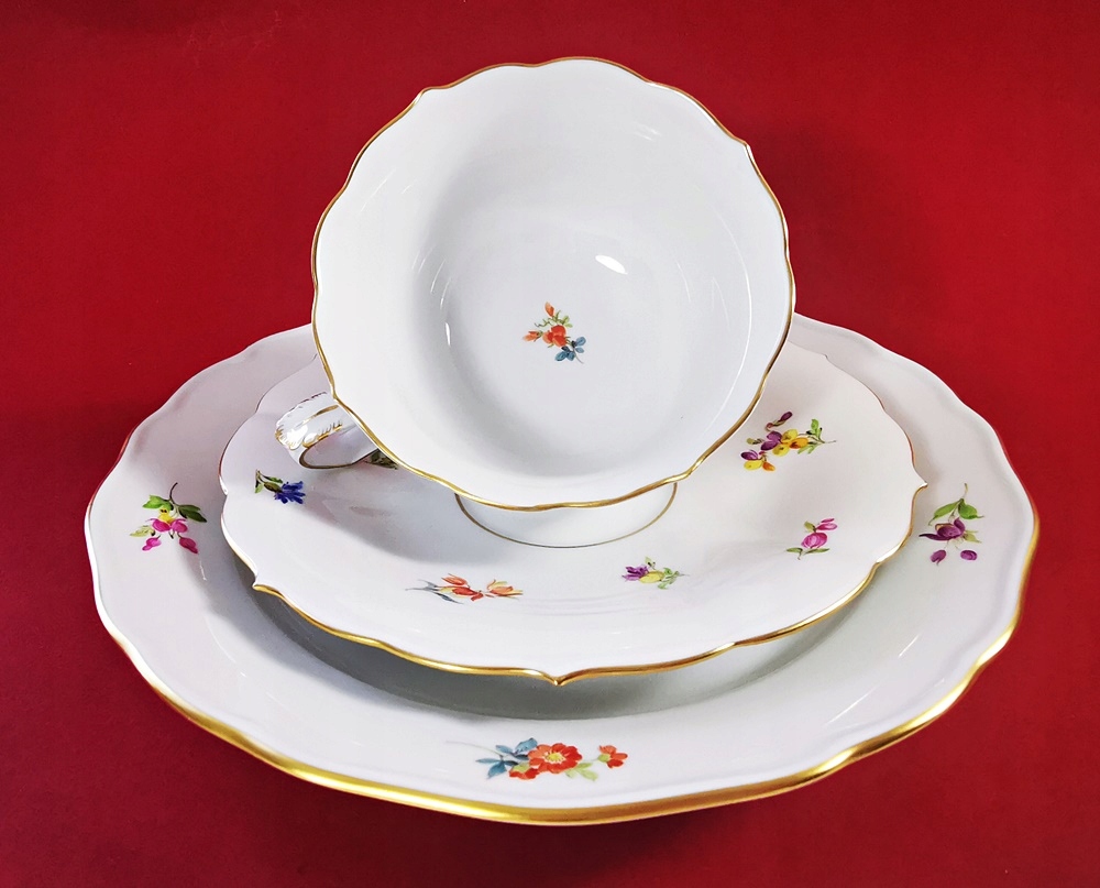 Редкий 3-тонный набор, завтрак из королевского производства Мейсена.