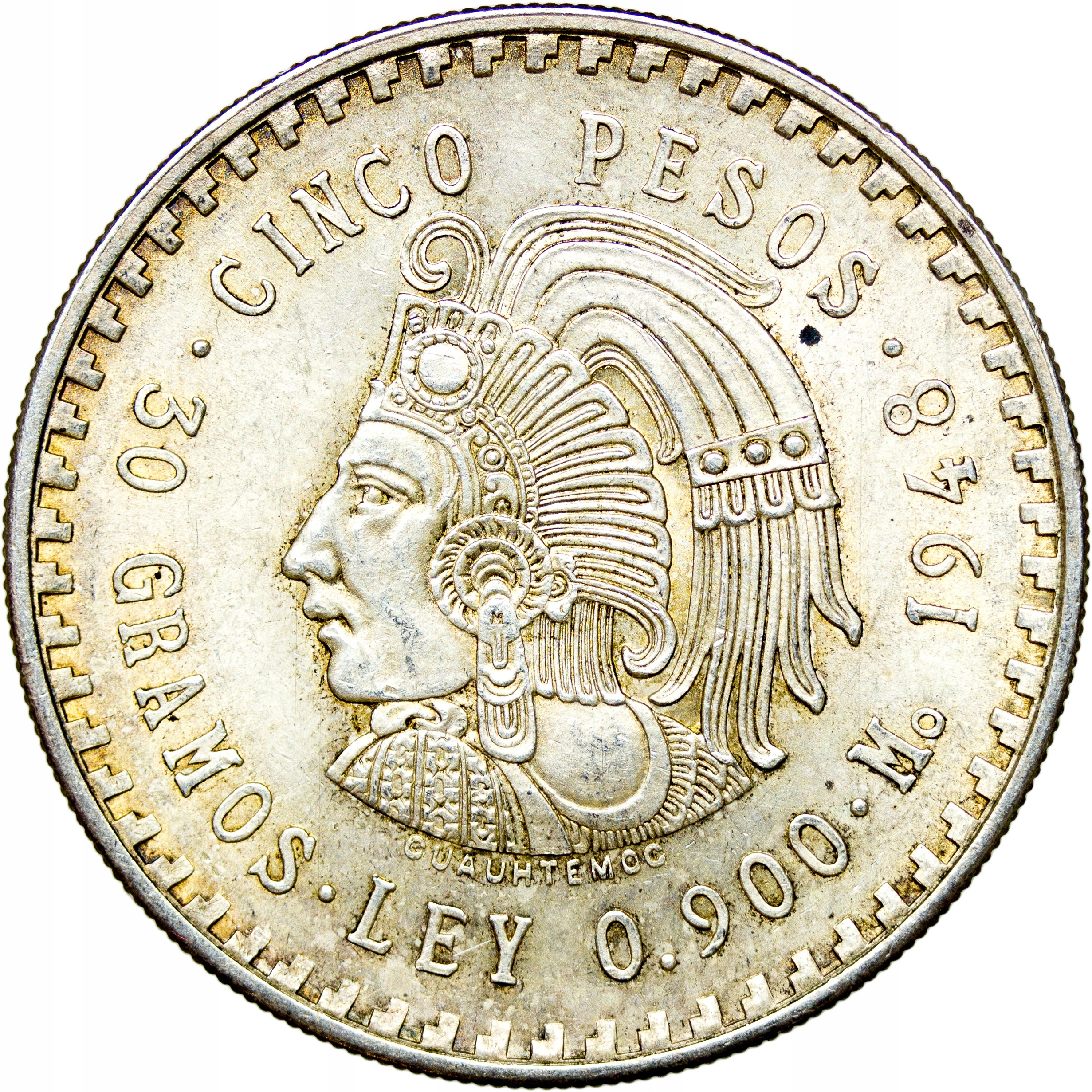 Мексика, 5 песо 1948, Aztek, клас 2/2+