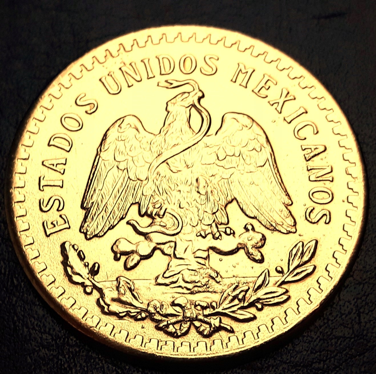 Мексика, 50 песо 1921 года, Сентенарио, Независимость, номинал, позолота