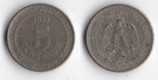 МЕКСИКА 5 СЕНТАВО 1911 ГОДА