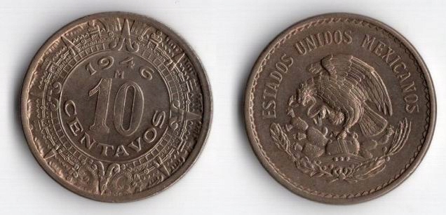 МЕКСИКА 10 СЕНТАВО 1946 ГОДА