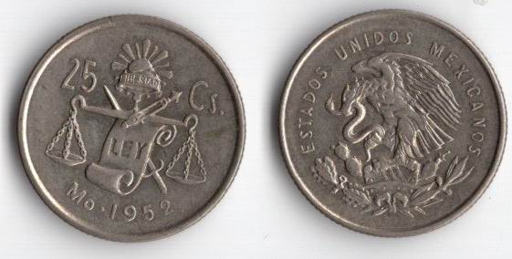 МЕКСИКА 25 СЕНТАВО 1952 ГОДА
