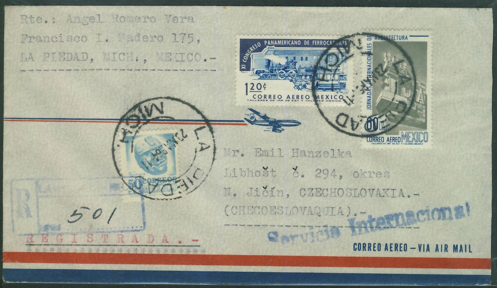 Мексика 1964 г. Р - Ла Пьяд через CSSR Air Mail