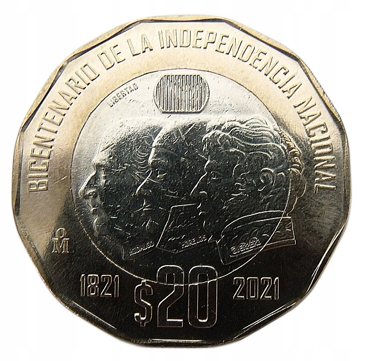 МЕКСИКА 20 ПЕСО 2021 200 НЕЗАЛЕЖНІСТЬ БІМЕТАЛ UNC