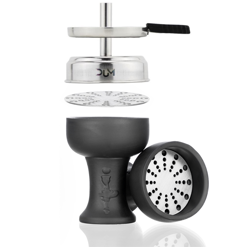 - 1 Глиняная чаша: внутри находится желоб, в который стекает патока. Это позволяет осуществлять так называемое чистое курение табака, гелей, патоки и т.п. + алюминиевый колпачок для угля