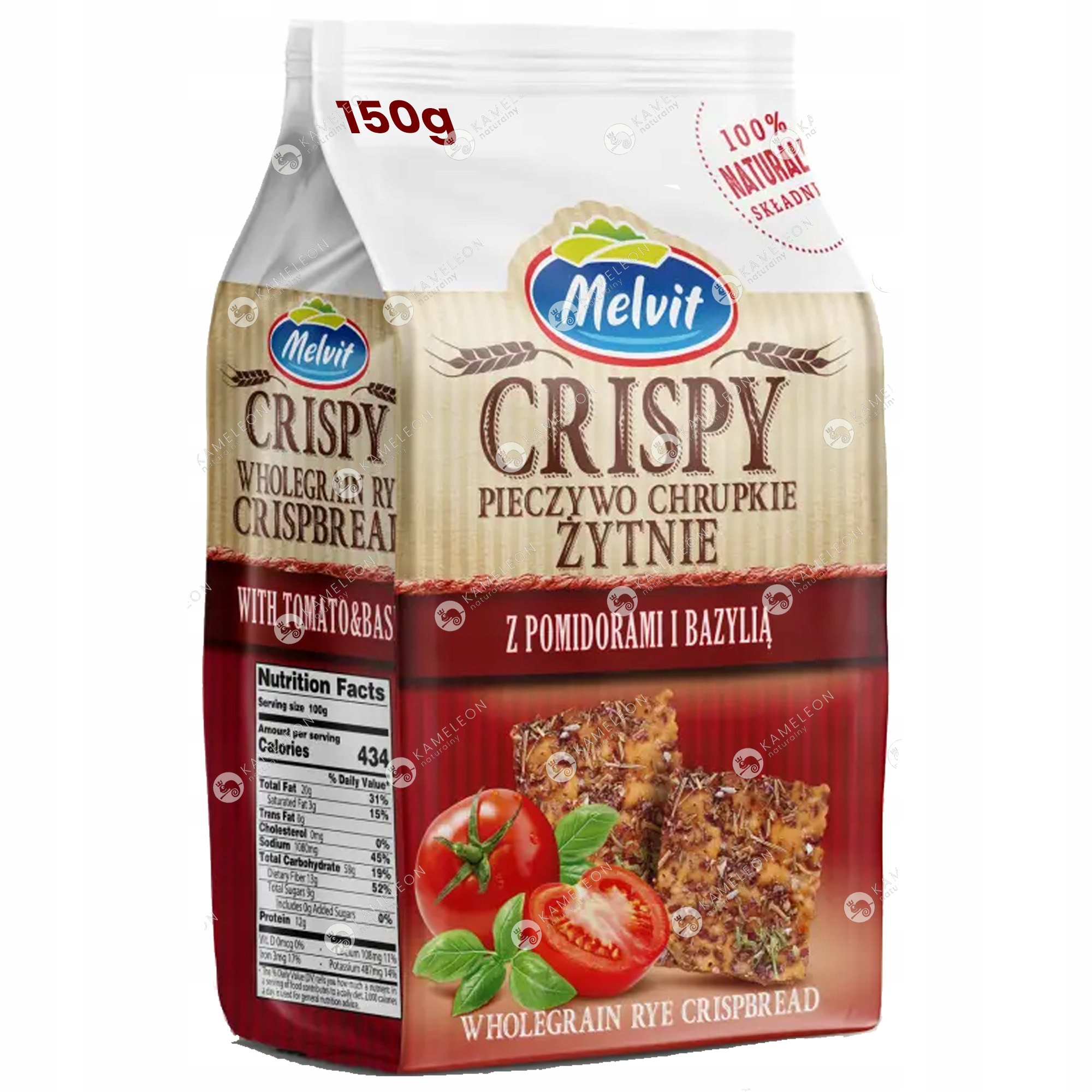 Melvit CRISPY хлібобулочні вироби хрусткі ЖИТНІ З ПОМІДОРАМИ та БАЗИЛІКОМ 150Г