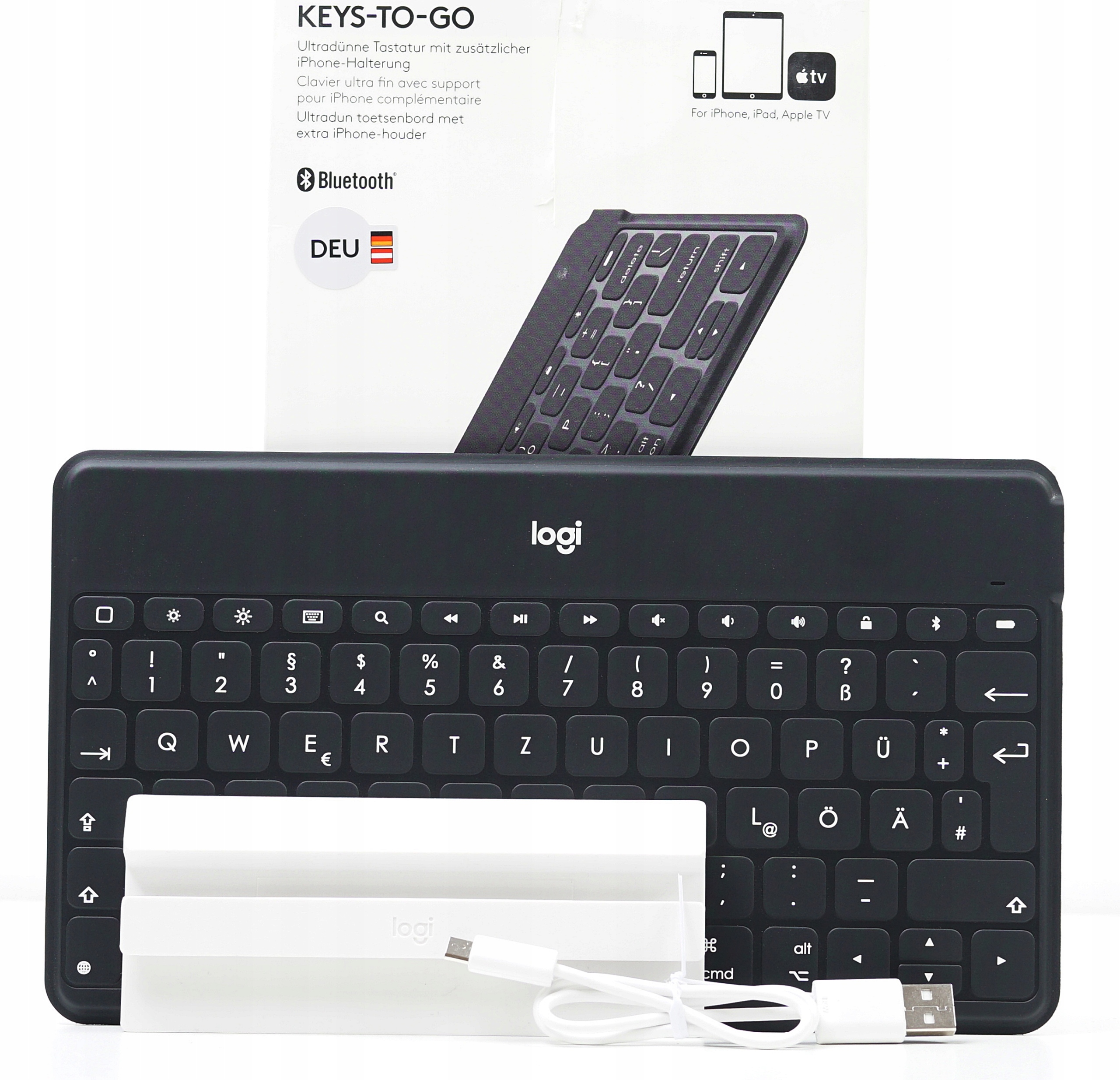 Мембранная клавиатура Logitech Keys-To-Go — РАСПОЛОЖЕНИЕ QWERTZ-КЛАВИШ на НЕМЕЦКОМ языке + БЕСПЛАТНЫЕ ПОЛЬСКИЕ НАКЛЕЙКИ!