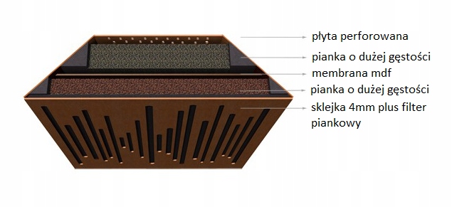 Панель изготовлена из двух слоев акустической пены высокой плотности.