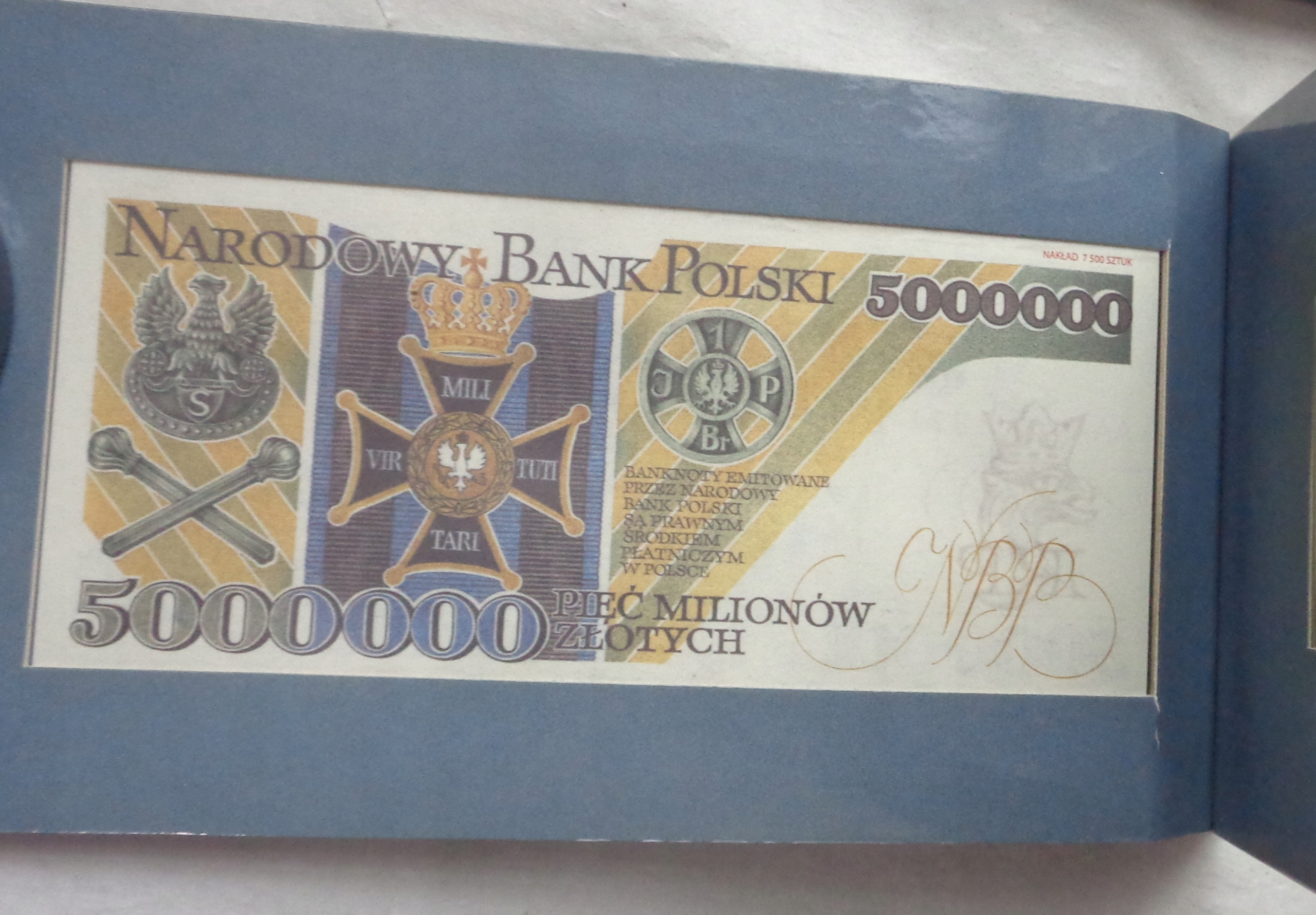 - Банкнота 5 000 000 злотых - латунь посеребренная - оксидированная