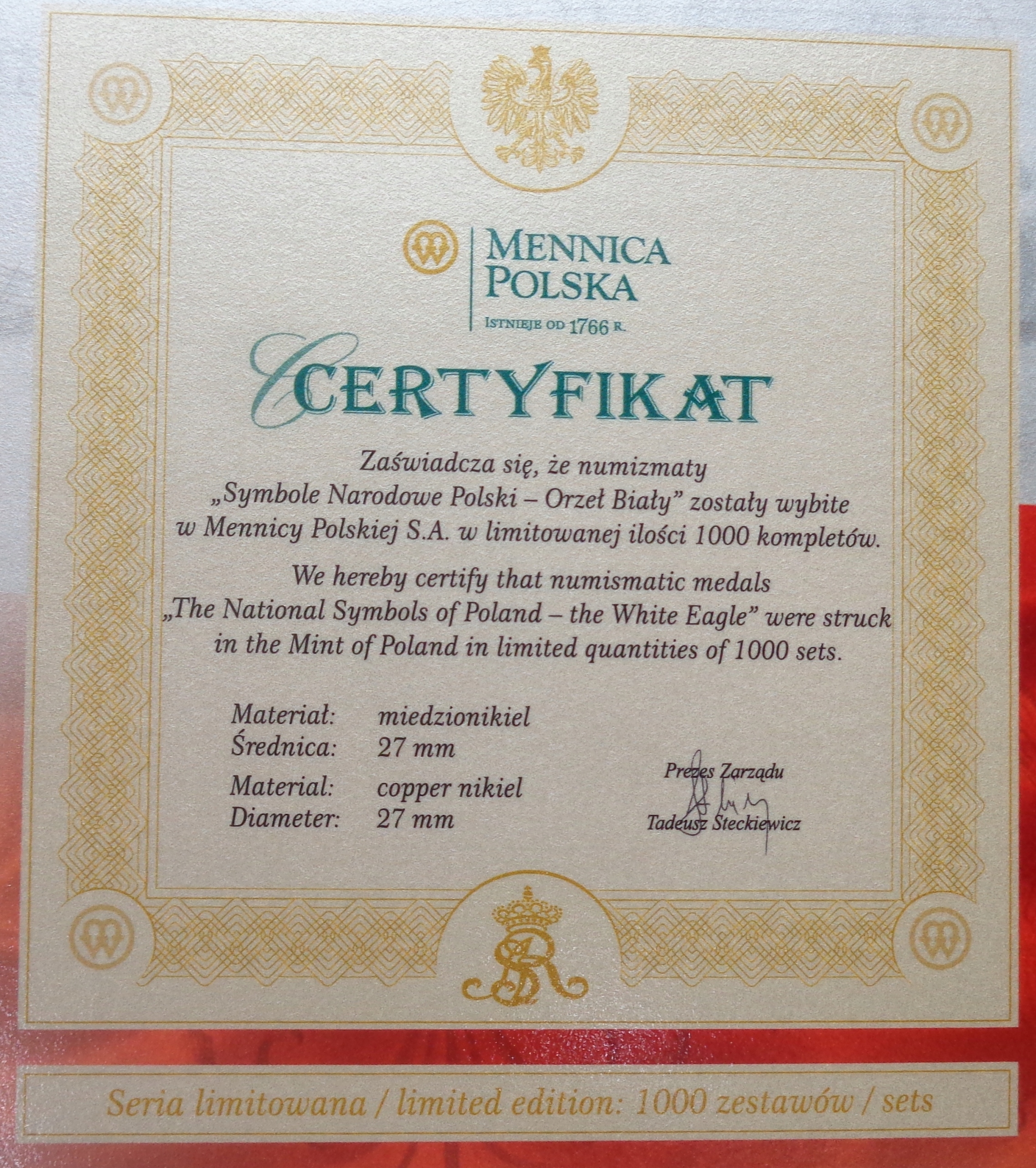 Менница Польска С.А. - Национальные символы Польши – Белый орел